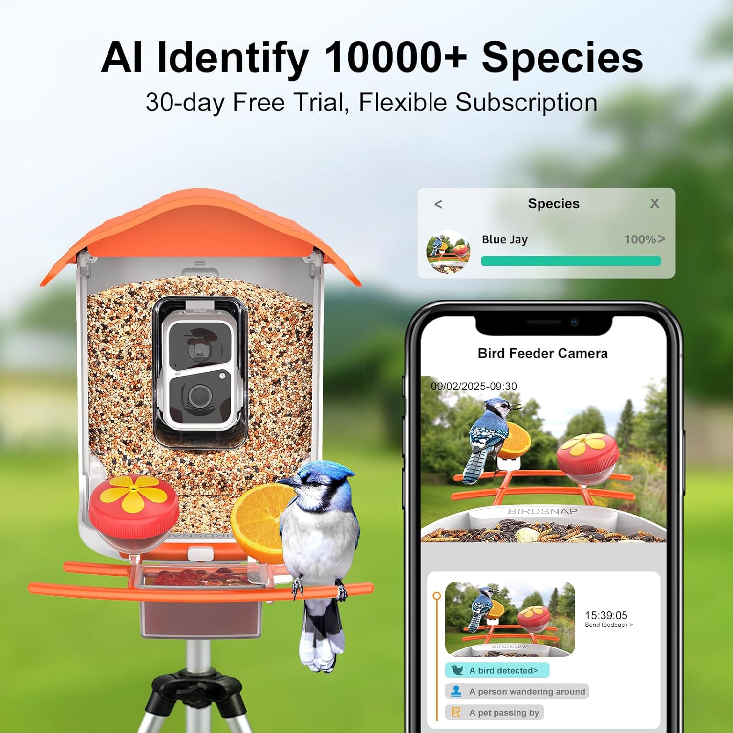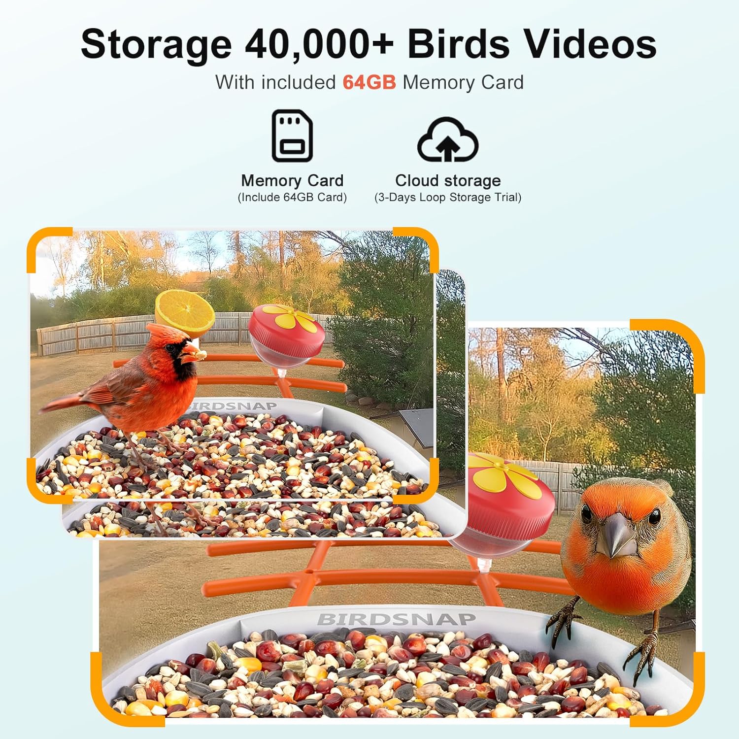 birdsnap® PAV- Smart Bird Feeder with Camera Solar Powered, 64GB Card & 2K HD Record Video Bird Camera Live with 5 DIY Add-ons, AI Identify Auto Capture, Ideal Gift for Birds Lover |