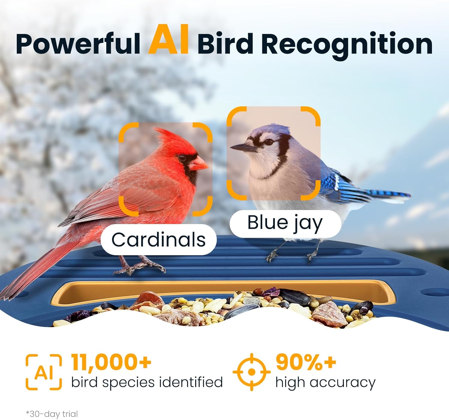 Bird Feeder with Camera, Smart Bamboo Bird Feeder, 2.5K UHD AI Identification, Real-time Videos & Pictures, Wireless Solar Powered Outdoor, Ideal for Garden Birding, Premium Present