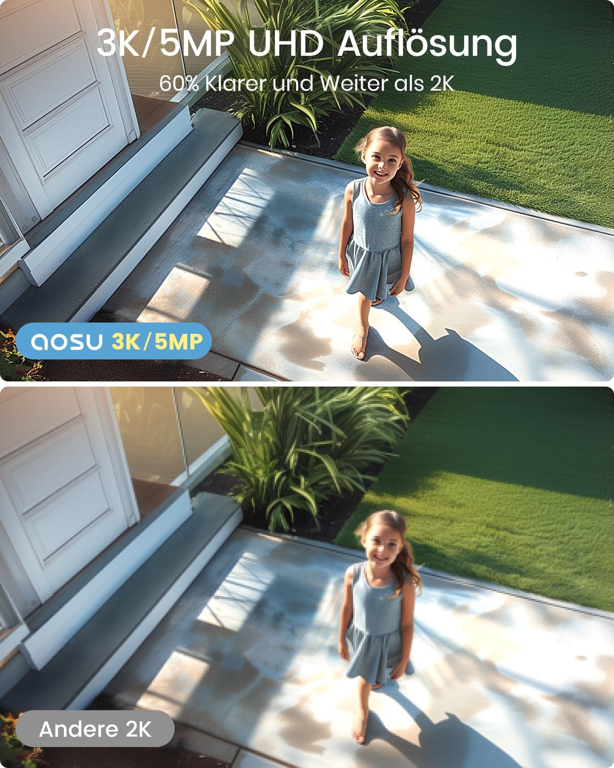 ŁÉĺŁÉÄŁÉőŁÉÇŁÉĹŁÉüŁÉäŁÉôŁÉĹŁÉłŁÉäŁÉüŁÉäŁÉŹ & ŁÉŐŁÉÇŁÉüŁÉäŁÉőŁÉőŁÉÄŁÉĺ: Die AOSU 7S ├╝berwachungskamera Aussen Solar kommt mit einem Solarpanel sowie einem eingebauten 2500mAh Akku. Das Solarpanel l├Ądt die Kamera und den Akku tags├╝ber auf und der Akku liefert nachts Strom. Einfache Installation einmal, dauerhafte Nutzung. ŁčôŁÉîŁÉĆ & ŁÉůŁÉÜŁÉźŁÉŤŁÉžŁÉÜŁÉťŁÉíŁÉşŁÉČŁÉóŁÉťŁÉíŁÉş: Die AOSU 7S Kamera ├ťberwachung mit ihrem 5MP 166┬░ Weitwinkelobjektiv sorgt f├╝r einen kristallklaren Panoramablick bei jeder Aufnahme - selbst bei Nacht erhalten Sie eine 3MP Nachtsicht in voller Farbe. Intelligente Erkennung: Diese WLAN Kamera Outdoor identifiziert Personen, Autos, Haustiere und andere Objekte genau und sendet nach der AI-Analyse Warnmeldungen an Ihr Telefon, damit Sie immer und ├╝berall wissen, was in Ihrem Haus vor sich geht. ŁÉłŁÉžŁÉşŁÉףɹŁÉąŁÉóŁÉáŁÉףɞŁÉşŁÉ× ŁÉäŁÉźŁÉĄŁÉףɞŁÉžŁÉ«ŁÉžŁÉá: Diese WLAN Kamera Outdoor identifiziert Personen, Autos, Haustiere und andere Objekte genau und sendet nach der AI-Analyse Warnmeldungen an Ihr Telefon, damit Sie immer und ├╝berall wissen, was in Ihrem Haus vor sich geht. ŁčĹŁčÉŁÉć ŁÉäŁÉźŁÉ░ŁÉףÉóŁÉşŁÉףɟŁÉŤŁÉÜŁÉźŁÉ× ŁÉüŁÉÜŁÉČŁÉóŁÉČ: Homebase kann mit bis zu vier Kameras gleichzeitig verwendet werden, das Video/Audio wird automatisch verschl├╝sselt und lokal im 32G Speicher gespeichert, Sie k├Ânnen das Video jederzeit auf Ihrem Mobiltelefon ansehen/herunterladen. Sie k├Ânnen auch einen lokalen, verschl├╝sselten AWS-Cloud-Service in der AOSU-App abonnieren, um eine h├Âhere Kapazit├Ąt zu erhalten (kostenloser 7-Tage-Test). ŁÉůŁÉÜŁÉŽŁÉóŁÉąŁÉóŁÉ× ŁÉşŁÉףÉóŁÉąŁÉףɞ: Selbst wenn Sie weit weg von zu Hause sind, k├Ânnen Sie direkt mit der Person vor der Kamera sprechen. Sie k├Ânnen auch die Kamera Zugang zu Ihrer Familie durch AOSU App teilen, AOSU vollst├Ąndig bewachen Ihre Familie Sicherheit. Breites Sichtfeld f├╝r umfassende ├ťberwachung: Die 166┬░ Weitwinkel-Linse bietet fast 180┬░ Sichtfeld und deckt sowohl den vorderen Bereich als auch seitliche Zonen ab. Perfekt f├╝r die ├ťberwachung von gro├čen R├Ąumen, Parkpl├Ątzen oder Au├čenbereichen. Eine Kamera reicht aus, um auch schmale G├Ąnge neben dem Haus zu ├╝berwachen, die zum Hinterhof f├╝hren. Flexible Installation mit getrennten Solar- und Kameramodulen: Im Vergleich zu einteiligen Solar-├ťberwachungskameras bieten unsere Modelle eine flexiblere Installation. Das Solarpanel und die Kamera sind separat, sodass das Solarpanel an einem sonnigen Ort installiert werden kann, w├Ąhrend die Kamera in den idealen ├ťberwachungswinkel ausgerichtet wird. Solarbetriebene ├ťberwachungskamera mit Akku: Unsere ├ťberwachungskamera wird durch Solarenergie betrieben und speichert Energie in einem langlebigen Akku. Bereits einige Stunden Sonnenlicht reichen aus, um den Akku vollst├Ąndig aufzuladen. Selbst bei Stromausf├Ąllen in Ihrem Haus oder bei Regen- und Schneewetter funktioniert die Kamera weiterhin zuverl├Ąssig. Echtzeit-├ťberwachung und Zwei-Wege-Kommunikation: Mit der aosu App und der ├ťberwachungskamera k├Ânnen Sie jederzeit Live-Videoaufnahmen anzeigen und eine Zwei-Wege-Kommunikation mit Besuchern f├╝hren. Ideal f├╝r den Empfang von G├Ąsten oder die Interaktion mit Lieferanten, besonders wenn Sie auf Gesch├Ąftsreise oder im Urlaub sind und trotzdem Besuch haben. Einfache Video-Sharing-Funktion mit aosu und Familienzugang: Mit der aosu-App k├Ânnen Sie ├ťberwachungsvideos problemlos mit Familienmitgliedern teilen. Zus├Ątzlich unterst├╝tzt Ihr Kameramanagement-Konto das Hinzuf├╝gen von Familienmitgliedern, damit diese jederzeit und ├╝berall auf die Videoaufnahmen zugreifen und Details einsehen k├Ânnen. Die App ist vollst├Ąndig mit Android- und iOS-Systemen kompatibel. Solar powered and cable-free: the AOSU 7S outdoor solar surveillance camera comes with a solar panel and a built-in 2500 mAh battery. The solar panel charges the camera and battery during the day and the battery provides power at night. Easy installation once, durable use. MP and colour: The AOSU 7S camera surveillance with its 5MP 166° wide angle lens ensures a crystal clear panoramic view with every shot - even at night you get a 3MP night vision in full colour. Intelligent detection: This WiFi camera outdoor identifies people, cars, pets and other objects accurately and sends warning messages to your phone after AI analysis, so you know what's going on in your house anytime and anywhere. Easy to use: this outdoor WiFi camera identifies people, cars, pets and other objects accurately and sends warning messages to your phone after AI analysis, so you know what is going on in your house anytime and anywhere. 32G Efficient BASE: Homebase can be used with up to four cameras at the same time, the video/audio is automatically encrypted and stored locally in 32G memory, you can watch/download the video on your mobile phone at any time. You can also subscribe to a local, encrypted AWS cloud service in the AOSU app for higher capacity (free 7-day trial). Family styling: even if you are far away from home, you can talk directly to the person in front of the camera. You can also share the camera access to your family through AOSU app, AOSU fully guard your family safety. WIDE Field of View for Comprehensive Monitoring:The 166° wide-angle lens provides nearly 180° field of view, covering both the front area and side zones. Perfect for monitoring large rooms, parking lots or outdoor areas. One camera is enough to monitor even narrow aisles next to the house leading to the backyard. FLEXIBLE INSTALLATION WITH SEPARATE SOLAR AND CAMERA M