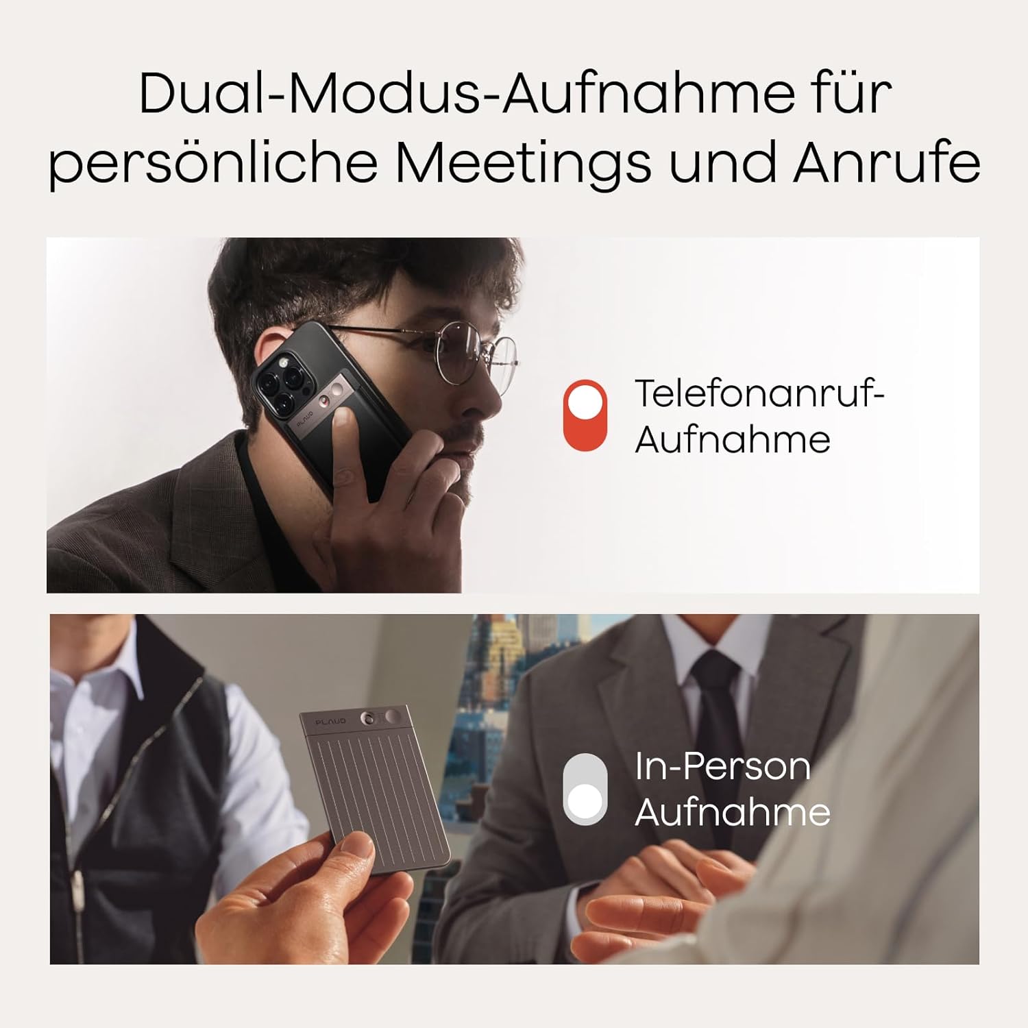 Plaud Intelligence: The AI voice recorder provides transcription in 112 languages with speaker labels and customizable vocabulary. Generate multidimensional summaries with over 3,000 templates, mind maps and seamless workflow integration. Data Security The Plaud recorder is designed to meet the highest safety standards such as SOC 2, HIPAA, GDPR and EN18031. Every recording and entertainment is safe and protected. Multi-modal input: The voice recorder with write function allows you to capture audio, write notes, add pictures and mark key moments for more context. Multidimensional Summaries With over 3,000 professional templates, Plaud Voice Recorder turns a conversation into multiple perspectives for faster, clearer insights. ULTRA SLIM DESIGN & AUDIO PERFORMANCE: Plaud Note is only 0.12 inches thin and weighs 0.1 It allows up to 30 hours of continuous recording, lasts 60 days in standby mode, and stores up to 64GB of audio locally. Dual Mode Recording: Switch between recording modes for phone calls and personal conversations to capture every detail without distraction. All inclusive & free starter plan: a Plaud Note device, a magnetic case, a magnetic ring and a charging cable. Each Plaud AI note device comes with a free Starter Plan (300 minutes of transcription per month). Upgrade to Pro or Unlimited anytime for more transcription minutes and advanced AI capabilities. The Plaud Note AI voice recorder: Plaud APP integrates advanced transcription functions and enables fast and accurate transcription in 112 languages. Developed on GPT-5, Claude 4.0, Gemini 2.5 Pro and o3-mini, users can create summaries, meeting minutes and to-do lists, increasing daily productivity With the dual-mode precision recording system: Plaud Note is the world's first recording device equipped with two recording modules. By simply pressing the one-touch recording button up to activate the advanced Vibration Conduction Sensor (VCS), which ensures clear call recordings by capturing the internal sound of the phone. This mini voice recorder is perfect for meetings, calls, voice notes and presentations Your privacy comes first: Local data is encrypted, cloud files are exclusively accessible to you, processing only with your permission. Plaud's apps and web portals offer unlimited cloud storage. Manage audio files effortlessly, sort them and share recordings, transcriptions and summaries easily. Improve team collaboration with transcription and summary features SUPERIOR RECORDING QUALITY This mini recording device has two built-in microphones and voice enhancement through AI to provide you with clear sound. The collaboration of the two microphones allows for more effective sound recording and reduces background noise interference. This design not only improves the clarity of the recording, but also gives the sound a three-dimensional and fuller quality during the recording process Large storage capacity and compact: With 64GB of built-in memory, this voice recorder holds up to 480 hours of audio and can record up to 30 hours on a single charge. This mini voice recorder is made of ultra-thin, durable aluminium alloy. Its slim and simple housing houses powerful technology that improves your daily work efficiency. Winner of the prestigious IF Product Design Award 2024 AI Recording Assistant The Plaud Note AI voice recorder with writing function is not only a recording device, but also a powerful assistant for your work and life. Thanks to its powerful AI function, it is able to provide a whole range of recording, transcription and summary services that will help you dramatically improve your work efficiency and productivity. Plaud has sustainability features recognized by trusted certifications. Environmentally friendly and low carbon EVERYTHING YOU NEED IS INCLUDED: 1 Plaud Note, 1 black case, 1 magnetic ring and 1 magnetic charging cable. PLUS: All users get 300 free minutes/month for advanced AI-powered transcription and summary services |