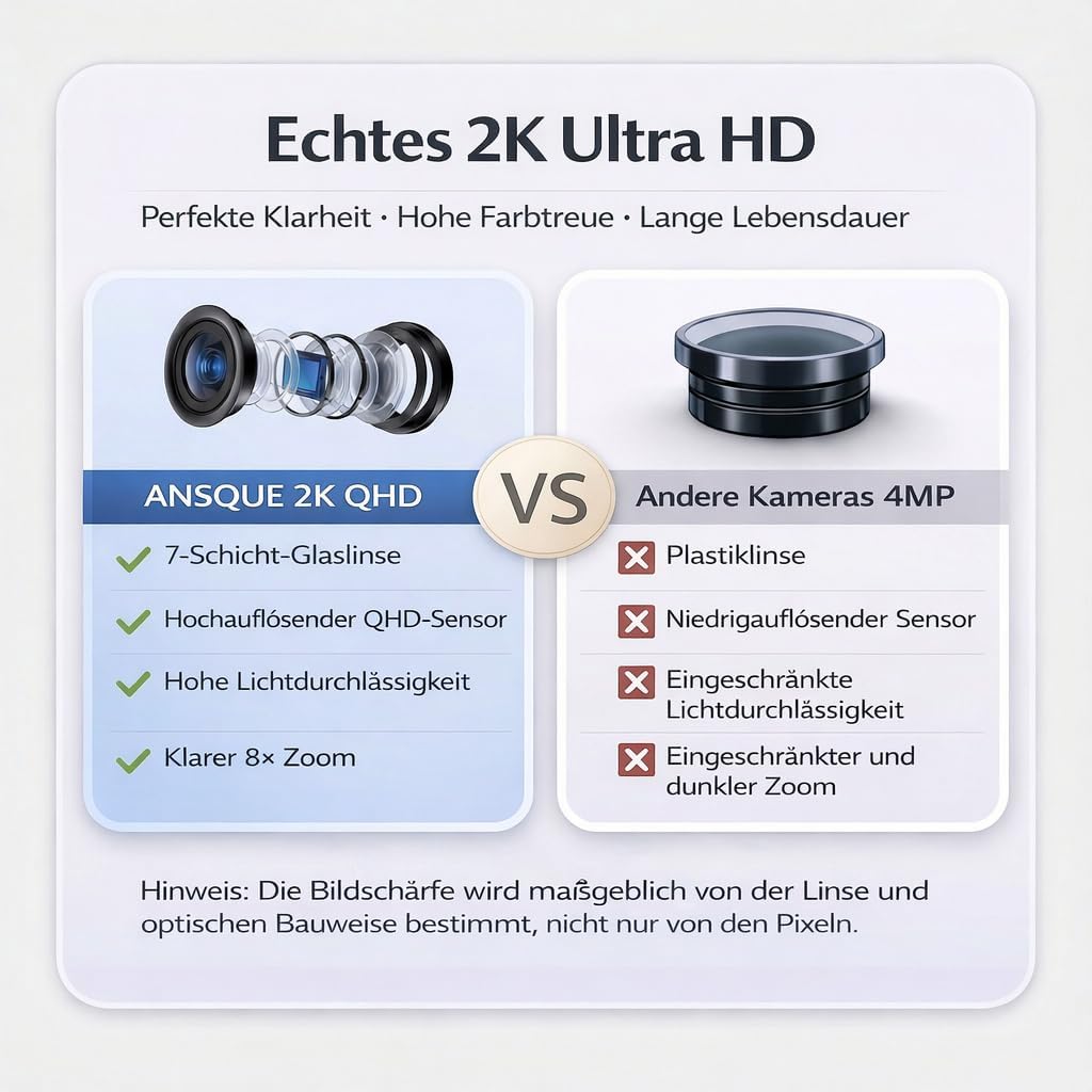 ANSQUE Outdoor Surveillance Camera Solar Battery, 2 Cam Set & Base Station, Without ABO, Wireless 360° PTZ Camera, 2K Colour Night Vision, Auto Tracking Function, 365 Days Battery Life, 32 GB Local |