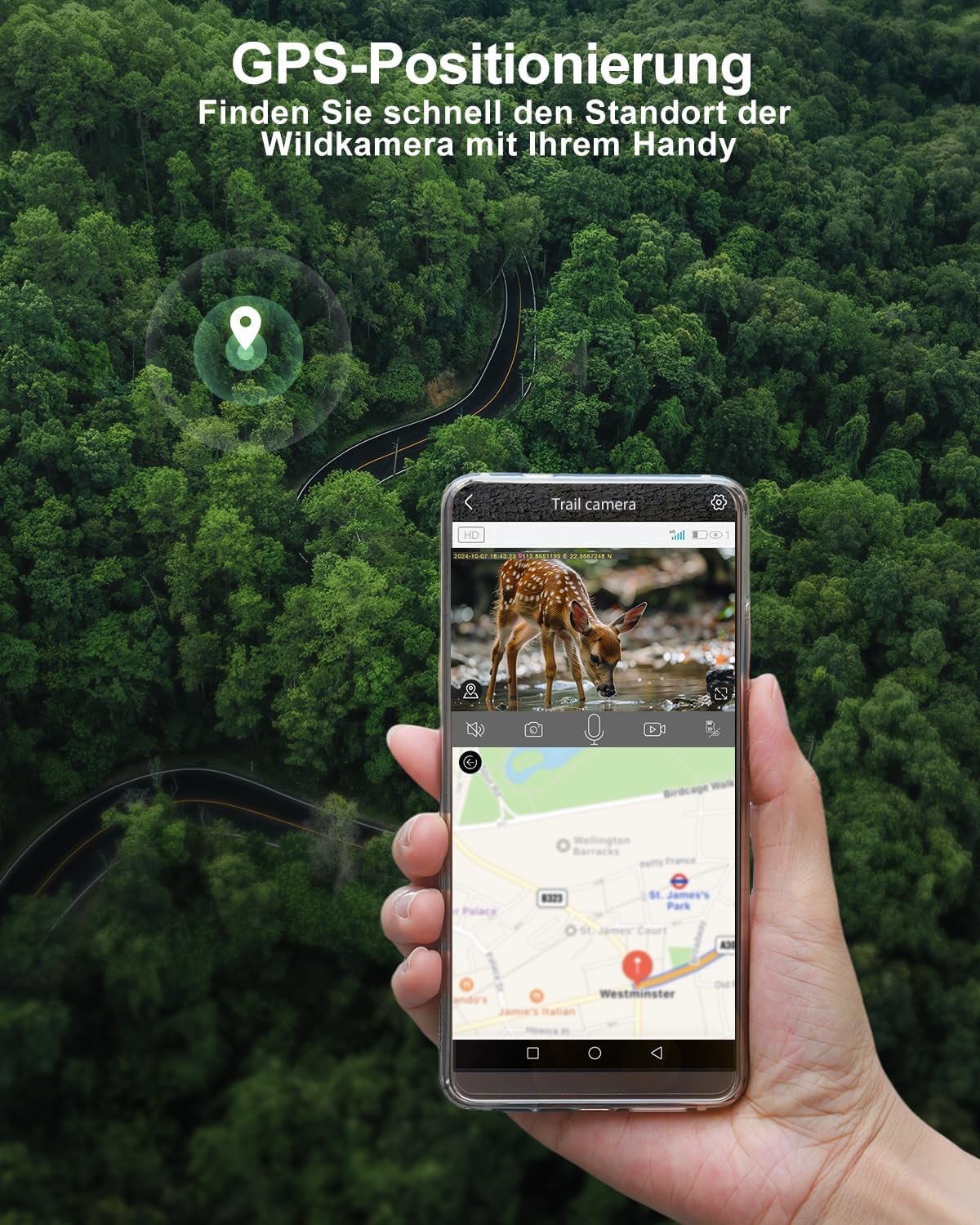 Xega 4G LTE Wildlife Camera with App and Motion Sensor, 2K Solar Surveillance Camera Outdoor with SIM Card 7800 mAh Battery, No-Glow Night Vision Camera, Alarm Push in Real Time, GPS, AI Detection |