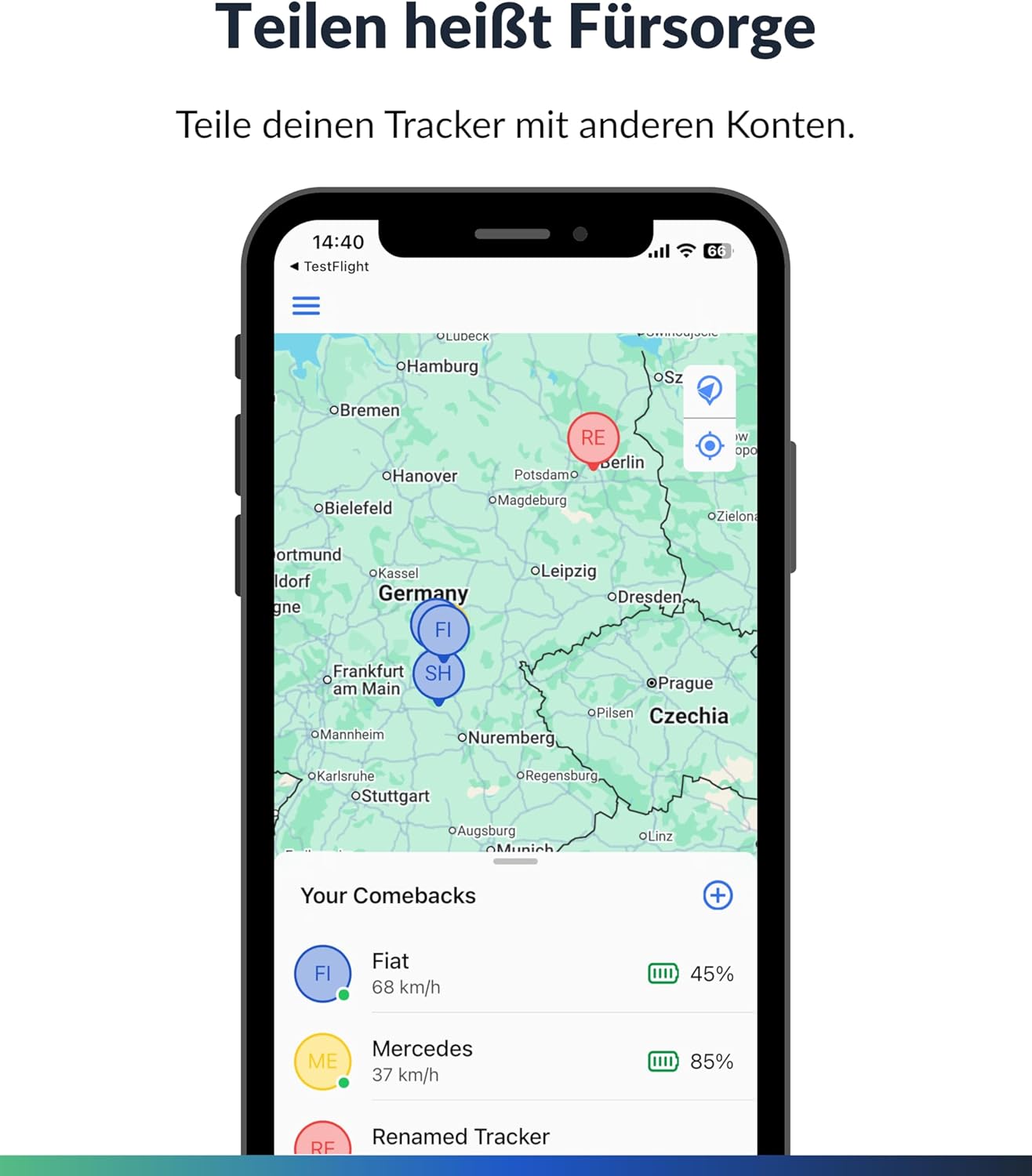 No mtl. Cost: Activation by means of activation code for 1 year: €39.95, 2 years: €59.95, 4 years: €79.95 Ready to go: SIM card already installed in tracker Range: Works in all 4G networks Free app for Android and iOS Live tracking, geo-fence, speed indication, historical routes, standing and parking times, family sharing, virtual fence, web application Ready to use location: The GPS transmitter for car is easy to install with double-sided tape. Thanks to the integrated 4G SIM card in 29 countries (whole EU with Switzerland, England and Norway) it is ready to use. Simply create an account in the app, select the appropriate activation and off you go. No subscription, no hidden costs. Functions of the GPS tracker: the Android and iOS app of the GPS finder has many functions. Geo-fencing, motion alarm, battery status, sharing the tracker with others and many more. No subscription: Activation by paying once activation code for 12 months: €39.95, 24 months: €59.95, 48 months: €79.95. Full cost control, no hidden costs. Fleet management: Thanks to our web application, a whole fleet can be managed. Connect as many GPS trackers to one account. Easily share all or selected GPS trackers with other accounts. So every account sees exactly what it should see. Easy to install. The GPS tracker can be attached in many ways thanks to its strong magnet. Whether under the seat or in the boot. No slipping, no clacking. Thanks to its large battery (8000 mAh), it holds approx. 2,800 km. Thanks to USB-C it can be charged with any standard charger. Small and inconspicuous: due to its small size, this tracking transmitter can be attached discreetly and discreetly, so that it is not found in an emergency. MORE DEVELOPMENT: We are currently working on a speed alarm and assigning an image to each tracker. Decide which features will be enabled next and take part in our regular surveys. This is how we create the app our customers want. |