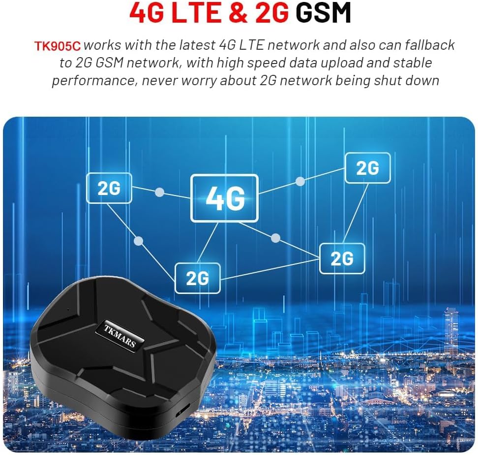 Localizador GPS para Coche 4G Sin Suscripción con App Gratuita TKMARS 20000mAH Batería 150 Días de Espera Antirrobo Magnético Impermeable Rastreador GPS Sin Restricciones Geográficas 4G TK905C |