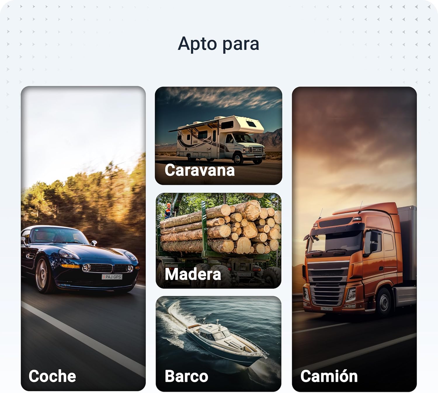 RELIABLE LIVE LOCATION: Enjoy reliable worldwide tracking, plus real-time with 4G LTE connectivity. You can see precisely where the GPS device is and therefore your vehicle at any time. You can see the routes traveled for 365 days on the Finder portal MORE ALARM PROTECTION: Receive notifications when the GPS tracker enters or exits a predefined area, in case of vibration, the tracker is removed, the battery is low, or if a predefined speed limit is exceeded. You can receive any notifications via app and email for more security NO DISTANCE LIMIT: With the PAJ GPS tracker, there is no distance limit, so you can always keep an eye on your car, motorcycle, truck, motorhome, taxi, boat, scooter, etc., no matter where you are SMALL DEVICE - LONG BATTERY: The compact size mini GPS tracker is easy to attach to your vehicle thanks to the built-in magnet. It also offers a battery life of up to 40 days in standby mode and 20 days with 1 hour active tracking and 23 hours in standby mode, ensuring optimal protection. Apart from for vehicles, the GPS tracker is suitable for children, seniors, luggage, bicycles or other larger valuable items SUBSCRIPTION: Includes a SIM card, as well as 24/7 customer support in multiple languages. Easy to use with our free app (Android and iOS compatible), which you can share with the whole family. Choose between Premium or Basic rates, with monthly payment options up to every 2 years, starting from €5 per month, depending on the length of the subscription. Detailed prices are available in the pictures. ✔ FIABLE LOCALIZACIÓN EN VIVO: Disfruta de un seguimiento fiable en todo el mundo, además en tiempo real con la conectividad 4G LTE. Podrás ver con precisión dónde está el dispositivo GPS y por lo tanto tu vehículo en cualquier momento. Puedes ver las rutas recorridas durante 365 días en el portal Finder ✔ MÁS PROTECCIÓN MEDIANTE ALARMAS: Recibe notificaciones cuando el rastreador GPS entre o salga de un área predefinida, en caso de vibración, el rastreador se retira, la batería está baja o si se excede un límite de velocidad predefinido. Puedes recibir cualquier notificación a través de la aplicación y por correo electrónico para más seguridad ✔ SIN LÍMITE DE DISTANCIA: Con el rastreador PAJ GPS no hay límite de distancia, por lo que siempre podrás vigilar tu coche, moto, camión, autocaravana, taxi, barco, patinete, etc., sin importar dónde te encuentres ✔ DISPOSITIVO PEQUEÑO - BATERÍA DE LARGA DURACIÓN: El mini localizador GPS de tamaño compacto es fácil de colocar en su vehículo gracias al iman integrado. Además ofrece una duración de batería de hasta 40 días en modo de espera y 20 días con 1 hora de seguimiento activo y 23 horas en modo de espera, lo que garantiza una protección óptima. Aparte de para vehículos, el rastreador GPS es adecuado para niños, personas mayores, equipaje, bicicletas u otros objetos valiosos de mayor tamaño ✔ SUSCRIPCIÓN: Incluye una tarjeta SIM, así como soporte al cliente 24/7 en varios idiomas. Fácil de usar con nuestra aplicación gratuita (compatible con Android e iOS), que puede compartir con toda la familia. Elija entre las tarifas Premium o Basic, con opciones de pago mensual hasta cada 2 años, desde 5 € al mes, dependiendo de la duración de la suscripción. Los precios detallados están disponibles en las imágenes. |