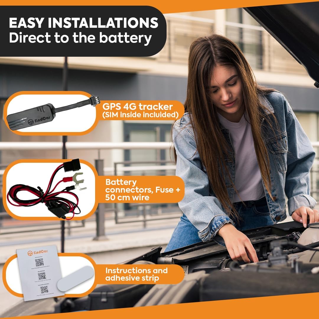 findCar GPS Tracker 4G – GPS Locator 4G for Cars, Motorcycles, etc | Fleets | Direct Battery Connection | Real Time Location | Speed Alerts | Anti-Theft | Easy Installation