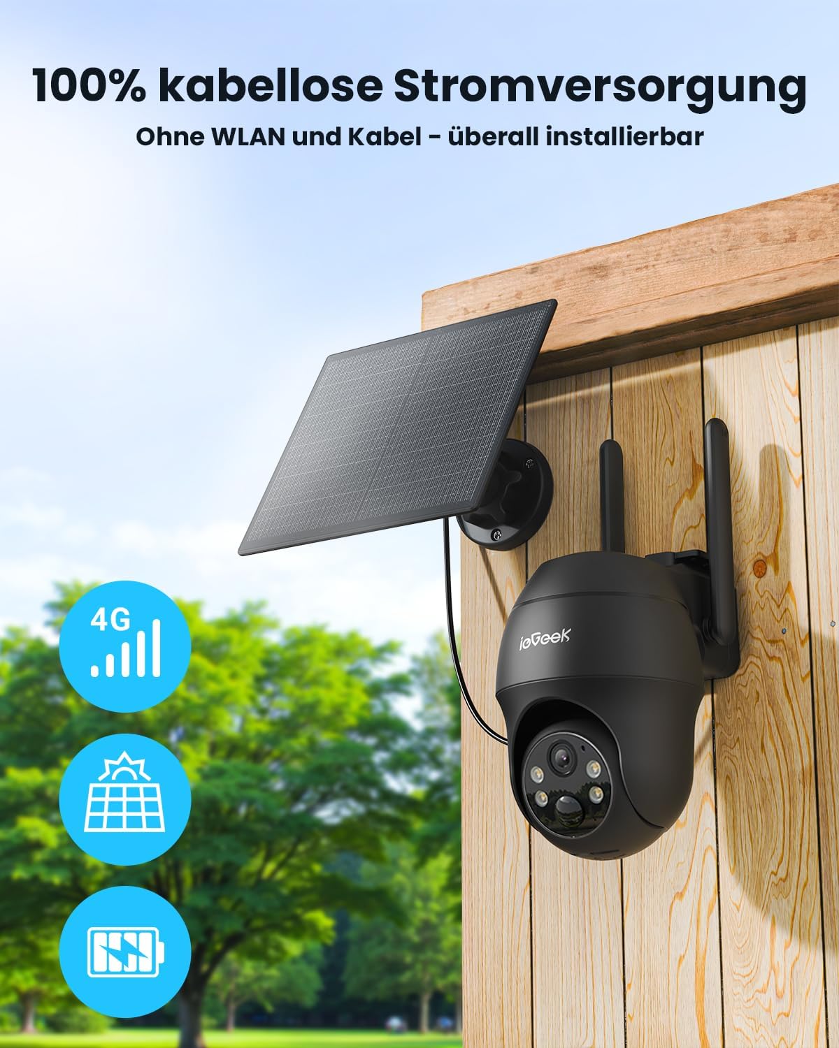 【No WiFi, Built-in SIM Card】ieGeek 4G camera is ideal for areas without WiFi or power supply: farms, horse stables, rural cottages. Built-in SIM, ready to power on without extra operations, 7 days of unlimited data for free. Subscription: 11,99€/month/unit. We recommend the original SIM (100% compatible). If you use your own SIM card, compatibility is not guaranteed, you must manually disable your PIN 【Uninterrupted Solar Supply, 100% Wireless】ieGeek 4G camera has built-in rechargeable battery and comes with solar panel that keeps the cctv camera fully charged by sunlight. Never need to remove it to charge Connects to the network via SIM card data, you don't need to run any network cable or install a wifi router. No wifi needed! No messy network cable and power cord, gives you the freedom to install anywhere in 10 minutes. No wires, no hassle! 【360° Visibility & Coverage】The 4G outdoor camera supports 350° horizontal and 90° vertical rotation. When you are in the live view, you can scroll or tilt by simply swiping left/right/up/down to see different directions and monitor any corner remotely. The ieGeek security camera provides a flexible field of view and your property gets 360° full protection. You can keep an eye on your property without a blind spot 【2K HD Image Quality, Sharp Color Night Vision】ieGeek battery outdoor camera equipped with advanced lens, images are sharp and clear whether in the day or night. ieGeek no Wi-Fi security camera has bright bulbs, it will light up when motion is detected at night, helping you see details more clearly and deter thieves. The ability to view colorful night images is something revolutionary, it allows you to identify important details that traditional black and white camera might lose 【PIR + Siren & Spotlight, Accurate Alert】ieGeek 4G LTE WiFi free security camera has advanced chip and PIR motion sensor, which can detect human motion accurately. You will not be disturbed by false alert caused by trees, birds, moths, etc. The siren and spotlight will be activated to warn the intruder when the camera detects motion at night. The app will send alert notifications to your phone instantly when motion is detected, then you can check the recordings on the phone 【Reliable after-sales service, 2-year warranty】ieGeek values user experience and provides professional monitoring service. For any issues, please contact us by Amazon, ieGeek official mail or ieGeek cam app. The support team resolves all incidents within 24 working hours. 2-YEAR WARRANTY - Free repair or replacement (except labor damage). Buy with confidence! 4G LTE Cellular Network & No WiFi Needed, Come with SIM Card & Unlimited Data Plan - ieGeek no WiFi security camera is connected to 4G network via SIM card and powered by sunlight, can be installed anywhere without WiFi coverage and electricity, such as farms, horse stable, etc. The SIM card is pre-installed, comes with 7-day free trial data. Note:Our sim card is pre-installed on the camera. If you want to use your SIM card, please unfold the card slot and replace with your SIM card or contact our team for help. Our unlimited data plan has 3 options: monthly is €8.15=€0.27/day; quarterly is €21.00=€0.23/day; annual is €81.70=€0.22/day 【Non-stop Solar Powered & 100% Wireless Installation】ieGeek 4G camera has built-in rechargeable battery and comes with solar panel that keeps the cctv camera fully charged by sunlight. Never need to remove it to charge Connects to the network via SIM card data, you don't need to run any network cable or install a wifi router. No wifi needed! No messy network cable and power cord, gives you the freedom to install anywhere in 10 minutes. No wires, no hassle! 360° Visibility & Coverage, 350° Panoramic & 90° Tilt:The 4G outdoor camera supports 350° horizontal and 90° vertical rotation. When you are in the live view, you can scroll or tilt by simply swiping left/right/up/down to see different directions and monitor any corner remotely. The ieGeek security camera provides a flexible field of view and your property gets 360° full protection. You can keep an eye on your property without a blind spot 2K QHD Image Quality & Crisp Color Night Vision - ieGeek battery powered outdoor camera is equipped with advanced lens, images are sharp and clear whether during day or night. ieGeek no Wi-Fi security camera has bright bulbs, it will light up when motion is detected at night, helping you see details more clearly and deter thieves. The ability to view colorful night images is something revolutionary, it allows you to identify important details that traditional black and white camera might lose PIR Motion Detection & Siren Bulb Warning - ieGeek 4G LTE WiFi free security camera has advanced chip and PIR motion sensor, which can detect human motion accurately. You will not be disturbed by false alert caused by trees, birds, moths, etc. The siren and spotlight will be activated to warn the intruder when the camera detects motion at night. The app will send alert notifications to your phone instantly when motion is detected, then you can check the recordings on the phone |