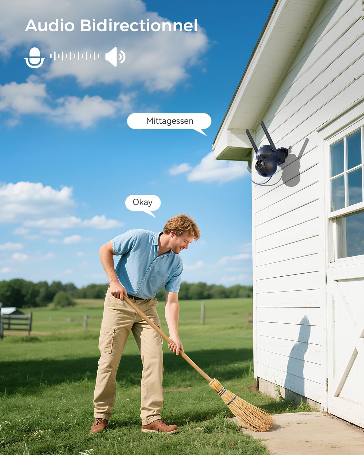 Xega Wireless WiFi Outdoor Solar Camera, 2K PTZ IP Camera Surveillance Night Vision Colorful Human Detection PIR IP66 Waterproof Two-way Audio Instant Alert, Cloud/TF Storage