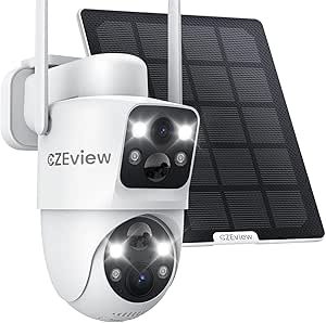 CZEview 4MP Outdoor Surveillance Camera Battery, 360° Dual Lens Outdoor Solar Camera, 2.4GHz WLAN Wireless Camera with PIR Motion Detector, Colour Night Vision, 2 Way |