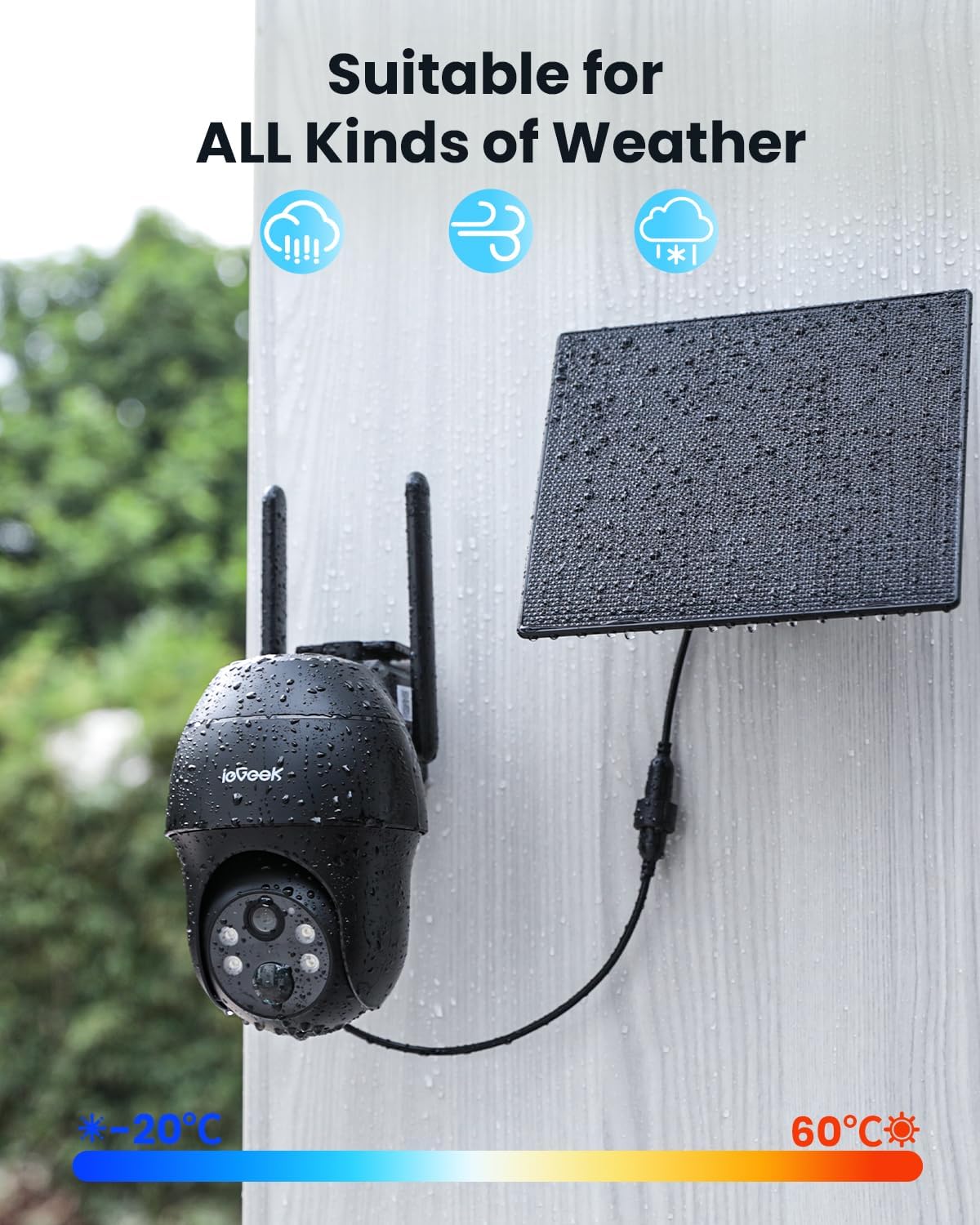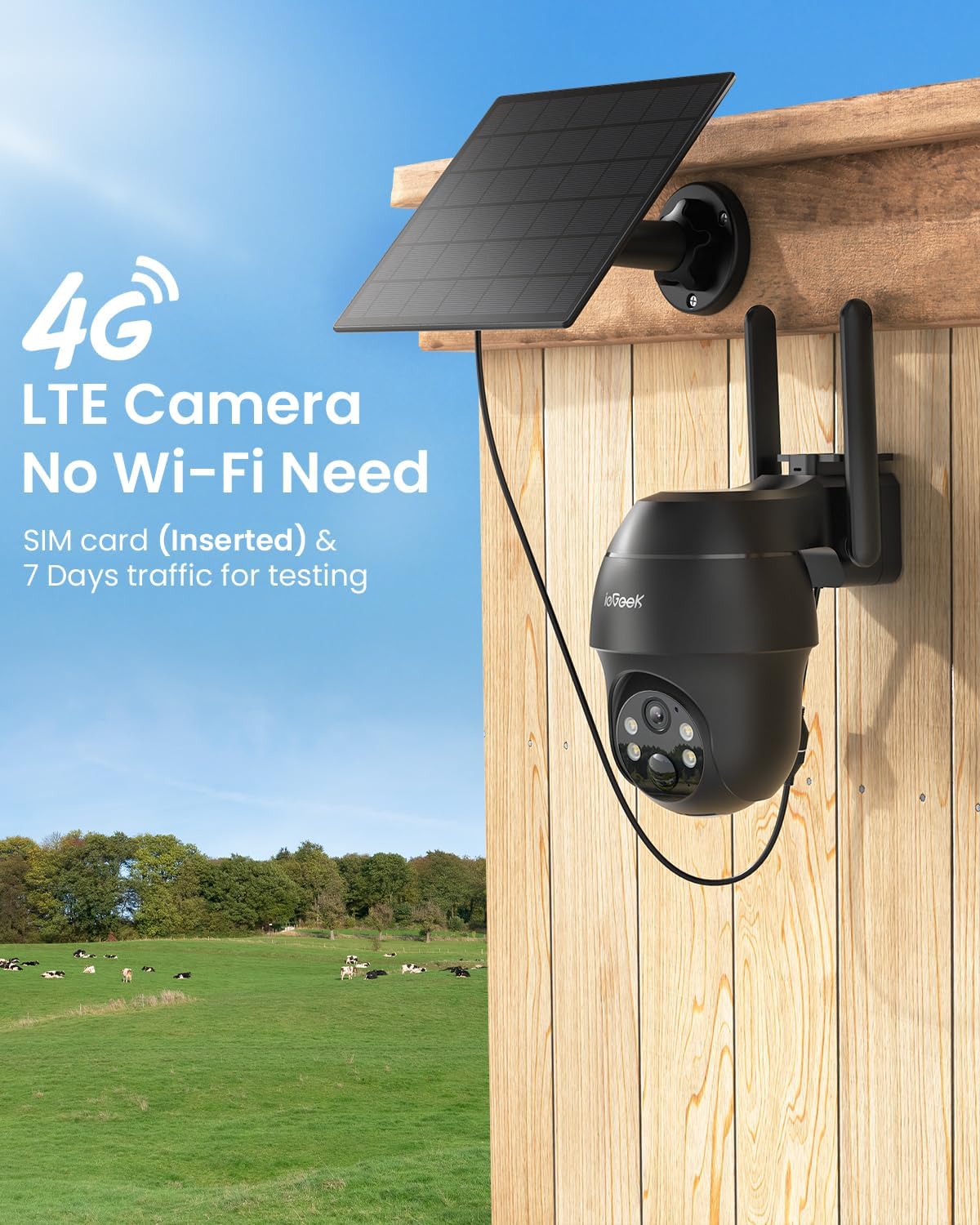 【Nonstop Solar Powered & 100% Wire-Free Installation】: ieGeek 4g camera has built-in rechargeable battery and comes with solar panel which keeps the cctv camera fully topped up by sunlight. You never need taking down to charge! It connects to network via SIM card data, you don't need to run any network cable or install wifi router. No wifi needed ! Without messy network cable and power cable, gives you the freedom to install anywhere within 10 minutes. No wires, no hassle! 【Pan 350° Tilt 90° & 360° Visibility and Coverage】: 4g camera outdoor supports 350° horizontal and 90° vertical rotation. When in live view, you can pan/tilt by simply swiping left/right/up/down to see different directions and monitor any corner remotely. ieGeek security camera gives a flexible field of view and your property gets 360° all round protection. You can keep an eye on your property without blind spot 【2K QHD Picture Quality & Crisp Color Night Vision】: ieGeek battery outdoor camera is equipped with advanced lens, images are sharp and clear whether during the day or night. ieGeek no wi fi security camera has bright spotlights, it will light up when movement is detected at night, helping you see details more clearly and deter burglar. The ability to see colourful night footage is a game-changer, it allows you to identify important details that traditional black-and-white camera might miss 【PIR Motion Detection & Siren Spotlight Warning】: ieGeek 4g lte security camera no wifi has advanced chip and PIR motion sensor, which can detect human movement accurately. You won't be bothered by the false alert which is caused by trees, birds, moth etc. The siren and spotlight will be activated to warn intruder when camera detect movement at night. The app will send alert notifications to your phone instantly when movement is detected, then you can check out recordings on the phone 【4G LTE Cellular Network & No WiFi Needed & Come with SIM Card & Unlimited Data Plan】: ieGeek no wifi security camera is connected to the 4G network via SIM card and powered by sunlight, you can install it anywhere without wifi coverage and electricity, such as farms, horse stable, etc. SIM card is preinstalled, it comes with 7 days free trial data. Please Note: Our SIM card is pre-installed in the camera. If you want to use your SIM card, please pop-up the card slot and replace with your SIM card or contact our team for help. 【Nonstop Solar Powered & 100% Wire-Free Installation】: ieGeek 4g camera has built-in rechargeable battery and comes with solar panel which keeps the cctv camera fully topped up by sunlight. You never need taking down to charge! It connects to network via SIM card data, you don't need to run any network cable or install wifi router. No wifi needed ! Without messy network cable and power cable, gives you the freedom to install anywhere within 10 minutes. No wires, no hassle! 【Pan 350° Tilt 90° & 360° Visibility and Coverage】: 4g camera outdoor supports 350° horizontal and 90° vertical rotation. When in live view, you can pan/tilt by simply swiping left/right/up/down to see different directions and monitor any corner remotely. ieGeek security camera gives a flexible field of view and your property gets 360° all round protection. You can keep an eye on your property without blind spot 【2K QHD Picture Quality & Crisp Color Night Vision】: ieGeek battery outdoor camera is equipped with advanced lens, images are sharp and clear whether during the day or night. ieGeek no wi fi security camera has bright spotlights, it will light up when movement is detected at night, helping you see details more clearly and deter burglar. The ability to see colourful night footage is a game-changer, it allows you to identify important details that traditional black-and-white camera might miss 【PIR Motion Detection & Siren Spotlight Warning】: ieGeek 4g lte security camera no wifi has advanced chip and PIR motion sensor, which can detect human movement accurately. You won't be bothered by the false alert which is caused by trees, birds, moth etc. The siren and spotlight will be activated to warn intruder when camera detect movement at night. The app will send alert notifications to your phone instantly when movement is detected, then you can check out recordings on the phone |
