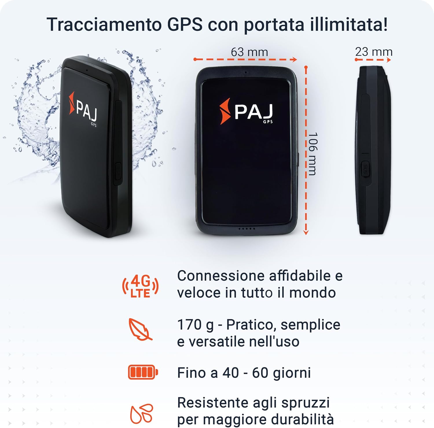 PAJ ALLROUND Finder, Localizzatore GPS per Auto, Moto, Anziani, Bambini, Oggetti, Tracker per Auto, Monitoraggio in Tempo Reale, Antifurto per Auto, Pulsante SOS per Emergenza |