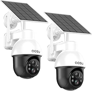 AOSU 3K 5MP Wireless Outdoor WiFi Camera, 360° Panorama PTZ, Battery Solar Security Camera, PIR Detection of People and Vehicles, Night Vision Colors, 2 Way Audio, 2 Pcs |