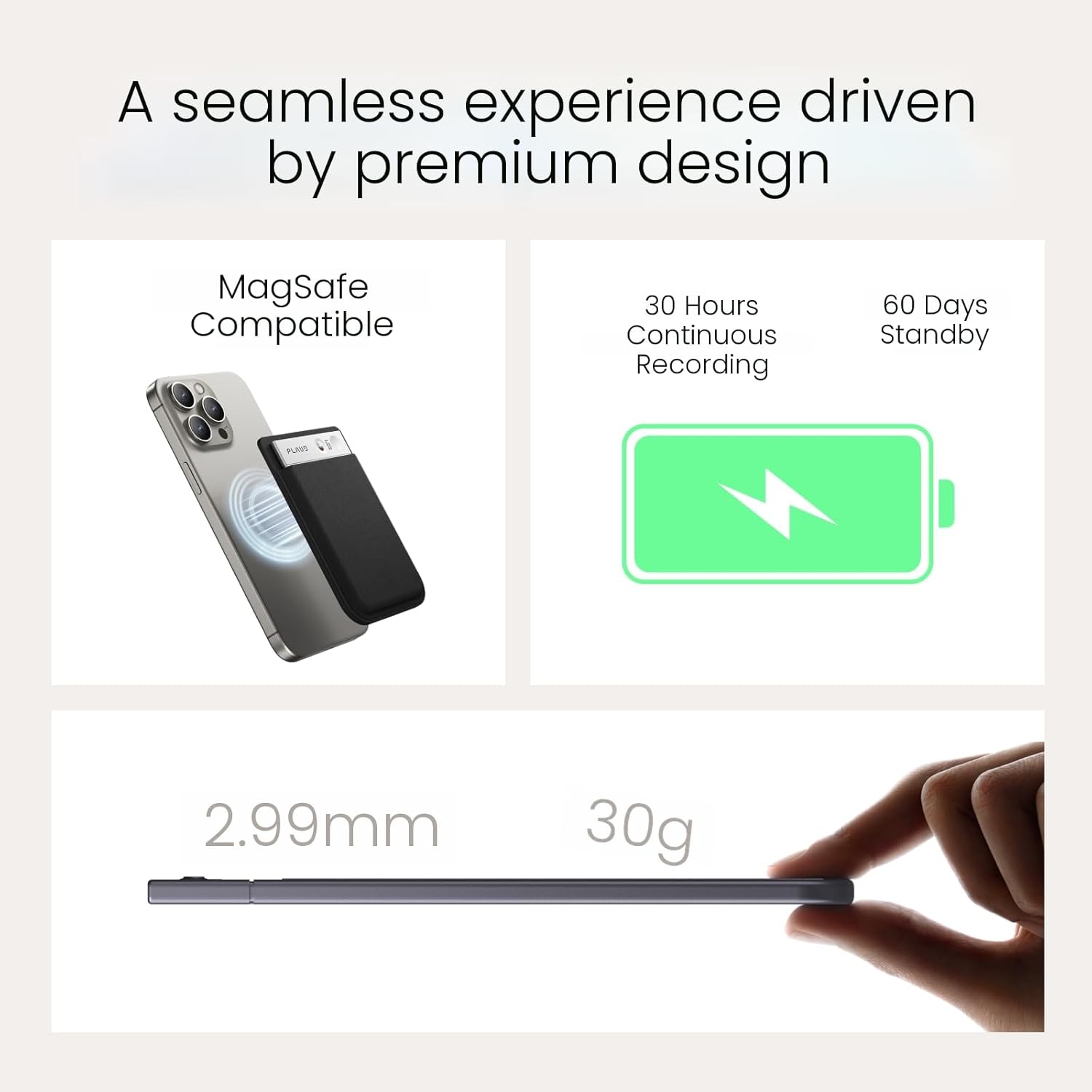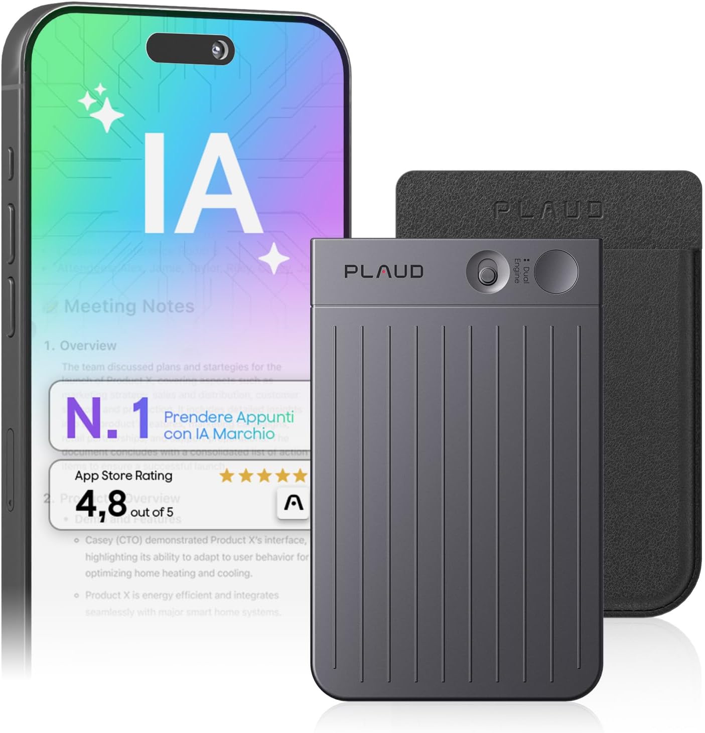 Plaud Intelligence: The AI Plaud voice recorder delivers AI transcription in 112 languages, with speaker recognition and personalized vocabulary. Generate multi-dimensional summaries, mind maps, and delivers smooth workflow integration with over 10,000 templates Data Security: This professional voice recorder is built to the highest standards with GDPR, ISO 27001, SOC 2, HIPAA and EN18031 compliance. Every conversation is safe and secure Multimode Input: Plaud audio recorder allows you to record audio, type notes, add pictures and mark key moments to achieve a richer and more complete context Multidimensional Summary: With over 10,000 professional models, this intelligent voice recorder turns every conversation into different perspectives, delivering faster and clearer insights Ultra Slim Design and Sound Quality: The Plaud Note voice recorder measures only 3mm thick and weighs 30g. It offers up to 30 hours of continuous recording, can stay in standby mode for 60 days and has 64GB of internal memory to store audio Dual Mode Recording: Easily switch between the recording modes of phone calls and live conversations, so you don't miss any details All Inclusive & Free Starter Plan: Each Plaud Note voice recorder includes a magnetic case, magnetic ring and charging cable. Each note recorder with IA Plaud includes the free Starter Plan (300 minutes of transcription per month). You can switch to Pro or Unlimited plans anytime for more transcription minutes and advanced AI capabilities Note: If required by law, please obtain the consent of all participants before initiating a registration. Respect privacy and comply with applicable law ARTIFICIAL INTELLIGENCE TRANSFORMS YOUR WAY TO WORK AND LIVE: Plaud Voice Recorder APP integrates advanced transcription functionality, allowing for fast and accurate transcription in 112 languages. Developed on GPT-5, Claude 4.0, Gemini 2.5 Pro and o3-mini, users can create summaries, meeting minutes and to-do lists, improving daily productivity FREE YOUR HANDS AND INCREASE EFFICIENCE: We are constantly striving to save you time and improve work efficiency with AI technology, just focus on what you are doing right now and Plaud Note digital recorder will automatically record entries, take notes and summarize everything NOTE: After activating Plaud Note, you'll enjoy 300 minutes of free transcription service per month. You can also choose from over 15 professional templates to generate summaries, meeting minutes or mind maps, which will help you better record content and improve work efficiency. You can also subscribe to a professional plan or unlimited plan to increase transcription time, access more professional templates, and use AI capabilities HIGH SECURITY: This professional voice recorder can be uploaded to cloud storage with highly encrypted technology to protect your privacy. No need to worry about the loss of content, you can use it freely even at work CONVENIENT TO USE: The audio recorder features a dual recording engine and allows you to start recording and changing modes with just one key. You can edit and export text via the mobile app at any time GREAT FOR VARIOUS OCCASIONS: The Plaud ai recorder is suitable for different sound environments thanks to AI noise cancellation technology. It is the ideal choice for meetings, seminars, phone calls, interviews and voice memos etc COMPACT AND POWERFUL: 30 hours continuous recording on full charge and 64GB memory capacity, up to 480 hours of recording. In addition, the voice recorder ai weighs only 30g and comes with a black magnetic case that you can attach to your phone or take with you anywhere EVERYTHING YOU NEED IS INCLUDED: 1 Plaud Note, 1 Black Case, 1 Magnetic Ring and 1 Magnetic Charging Cable. You get 300 free transcription minutes each month |