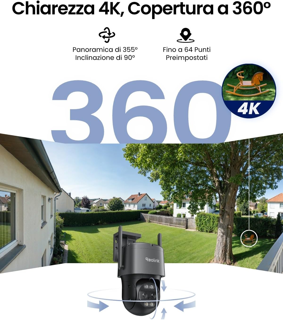 Alarm and Detection of People/Vehicles/Animals: This WIF 5GHz camera intelligently detects the movement of people, vehicles and animals, sending accurate alerts in real time. The all-new pet detection feature allows you to avenue on dogs and cats. It guarantees you peace of mind anywhere and at any time. Auto Tracking & 6X Zoom: With the telephoto lens and wide-angle PT lens, this ptz camera supports automatic tracking and 6X hybrid zoom to closely follow and focus the lens. With a dual view, you can have ultra-wide panorama and crisp close-up view at the same time. Flexible Storage Options: The surveillance camera supports Micro SD card up to 512GB(not included) and FTP for storage, Adopts high efficiency H.265 video encoding to save half the bandwidth and storage space. 【Dual-Band Wi-Fi 6】This outdoor 4K PTZ camera supports dual-band Wi-Fi 6 at 2.4GHz and 5GHz for more stable range, greater flexibility and significantly higher transmission speeds, ideal for the most demanding video surveillance. 4K Color Day & Night: The 4K wide-angle lens can deliver crisp color overview in 4K UHD. Built-in spotlights allow you to get bright and clear colour images even at night. Alarm and Detection of People/Vehicles/Animals: This 5GHz wifi camera intelligently detects the movement of people, vehicles and animals, sending accurate alerts in real time. The all-new pet detection feature allows you to covet dogs and cats. Give you peace of mind anywhere, anytime. Auto Tracking & 6X Zoom: With the telephoto lens and wide-angle PT lens, this ptz camera supports automatic tracking and 6X hybrid zoom to closely follow and focus the lens. With a dual view, you can have ultra-wide panorama and crisp close-up view at the same time. Ultra Wide Field of View: The wide-angle lens offers a horizontal viewing angle of 104°-38° and vertical viewing angle of 60°-21°. It can pan 355°, tilt 90°, following the object at a distance of 15m in day and 10m at night, to achieve all-round surveillance. Flexible Storage Options: The surveillance camera supports Micro SD card up to 512GB(not included) and FTP for storage. Adopts high efficiency H.265 video encoding to save half of bandwidth and storage space. Wi-Fi 6: Basado en el estándar IEEE 802.11ax y el estándar de seguridad de Wi-Fi WPA3-PSK, Wi-Fi 6 proporciona la seguridad, eficiencia, cobertura y rendimiento requeridos por los usuarios de Internet en la actualidad. Con 4 veces más capacidad, esta nueva generación puede acomodar más dispositivi os, lo cual es ideal para redes congestionadas. |