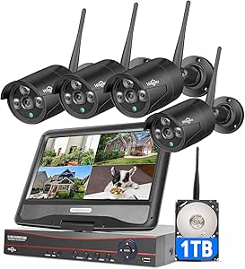 [16CH Expandable, 5MP] Hiseeu Home Security System, 2.4G/5G Wireless WiFi Pro 4K Full 12" LCD Monitor Built in NVR, 24/7 Recording, 3TB HDD, DC12V 5MP Outdoor Bullet Cameras, Night Vision, Waterproof