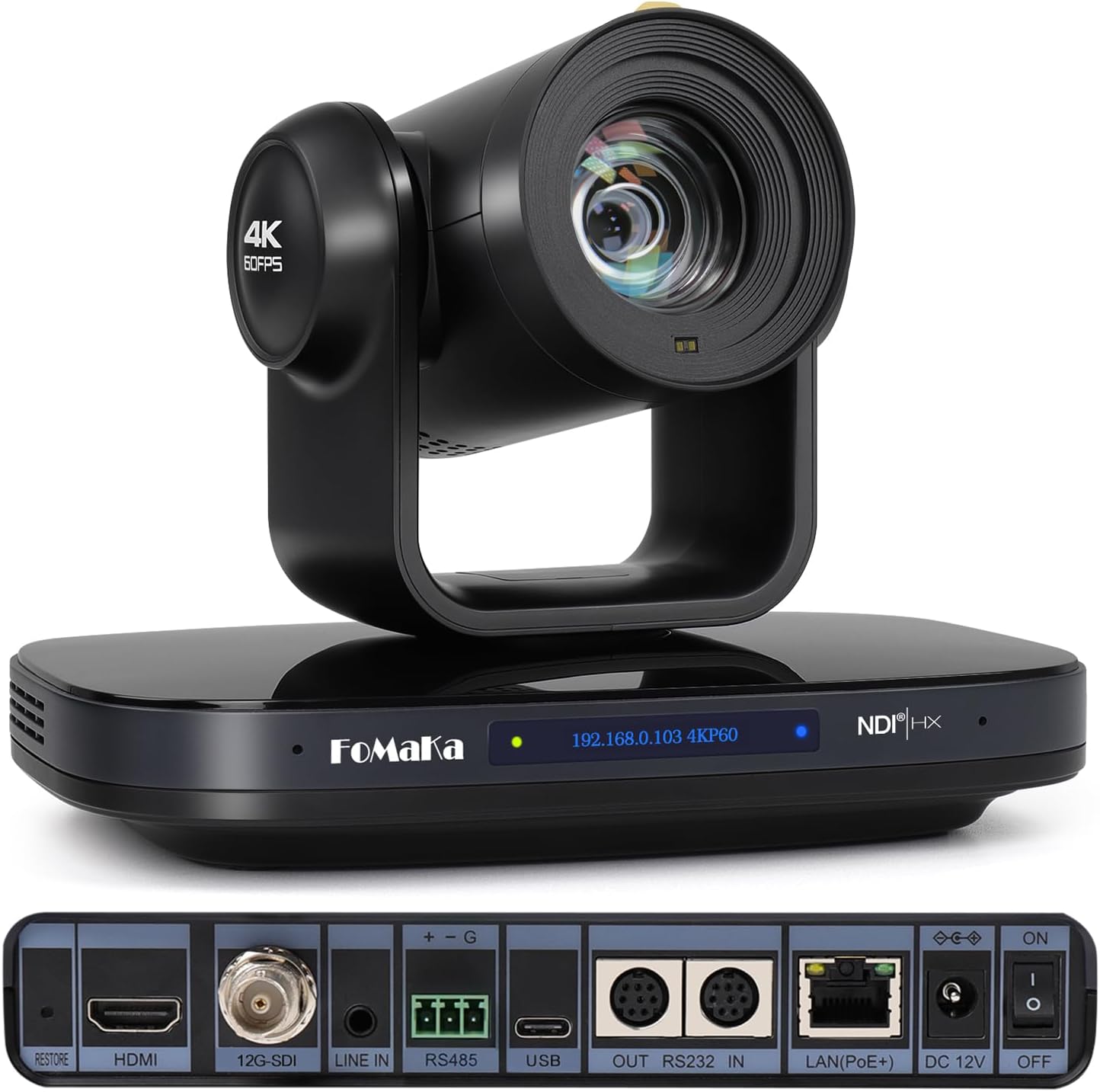 FoMaKo NDI PTZ Camera, AI Auto-Tracking Gen 3, 20x Optical Zoom HDMI PTZ Camera for Church Worship Education Events (NDI 6 & NDI HX3 Certified)(KN20A Pro Black)