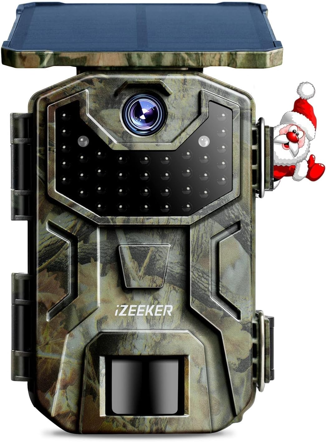 iZEEKER Solar Trail Camera 36MP 2.7K 30fps with Night Vision 5200 mAh Rechargeable Lithium Battery No Glow Infrared LEDs, Game Camera with Motion Activated IP66 Waterproof for Outdoor Monitoring |