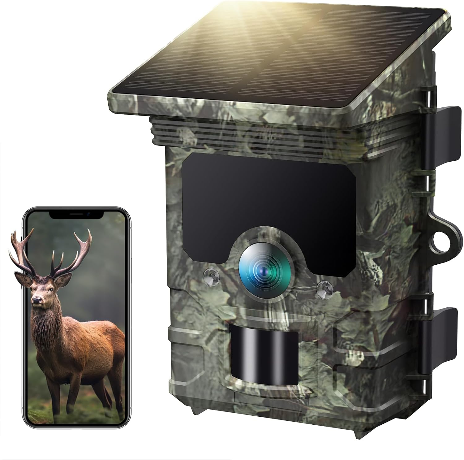 4K Trail Camera WiFi - 85MP 30FPS Solar Trail Camera with 850nm Night Vision, 120° Wide-Angle Motion Activated Game Cam, 0.1s Trigger, IP66 Waterproof for Wildlife Monitoring |