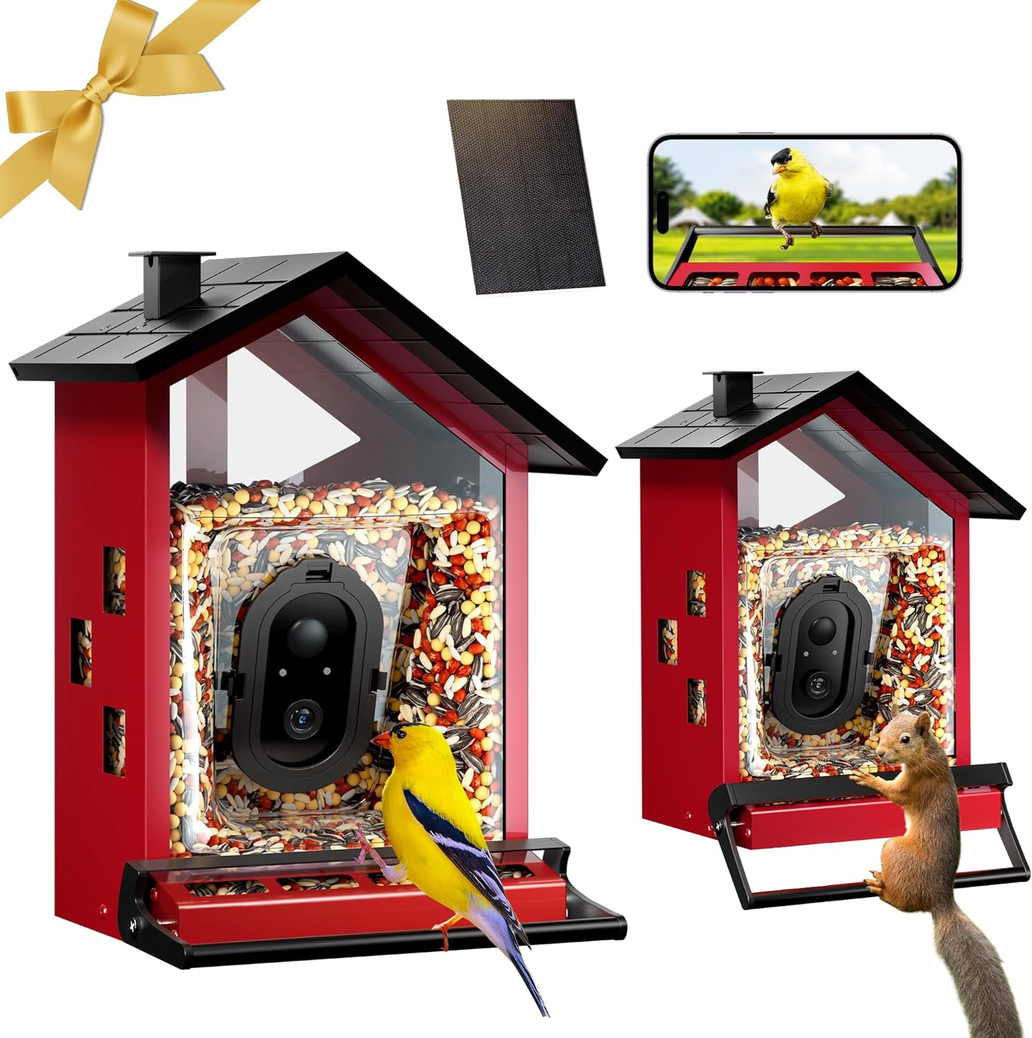 Smart Bird Feeder with Camera Solar Powered Squirrels-Proof, AI Identify Bird Species & Instant Arrival Notification Camera, CCPA Data Security, Metal Case 3.2L Large Capacity Gift |