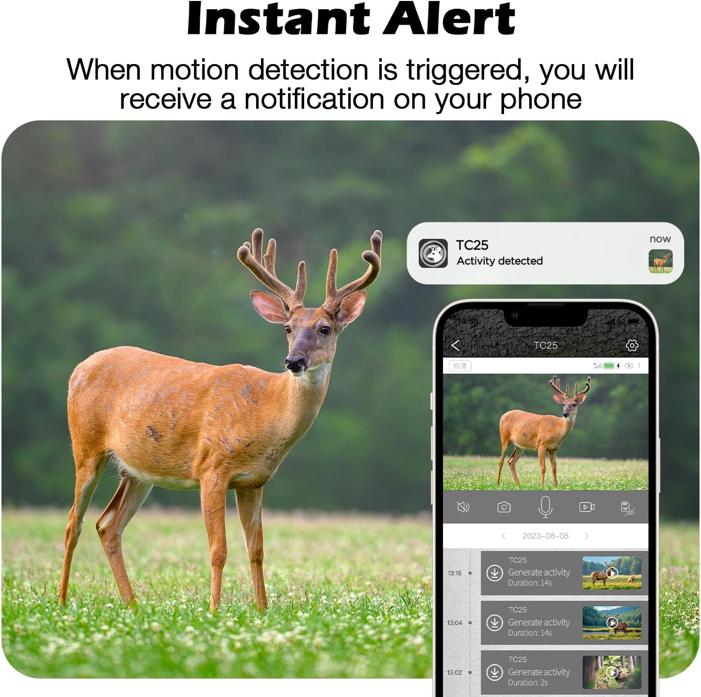 VOOPEAK Cellular Trail Camera - 2K Live Streaming Game Camera with Built-in SIM Card, 0.1s Motion Activated for Wildlife Monitoring with 850nm No-Glow Night Vision, IP66 Waterproof