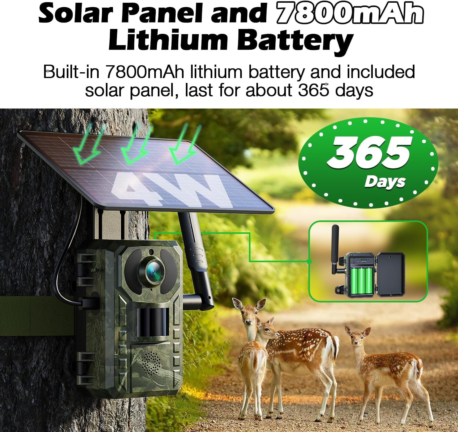 VOOPEAK 4G Solar Trail Camera - 2.5K Live Streaming Game Camera with Built-in SIM Card, 0.1s Motion Activated Wildlife Camera with 940nm No-Glow Night Vision, IP66 Waterproof Hunting Camera |
