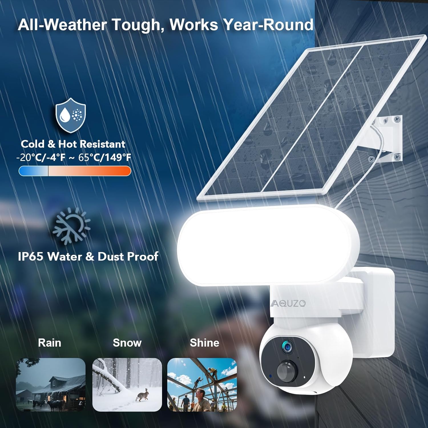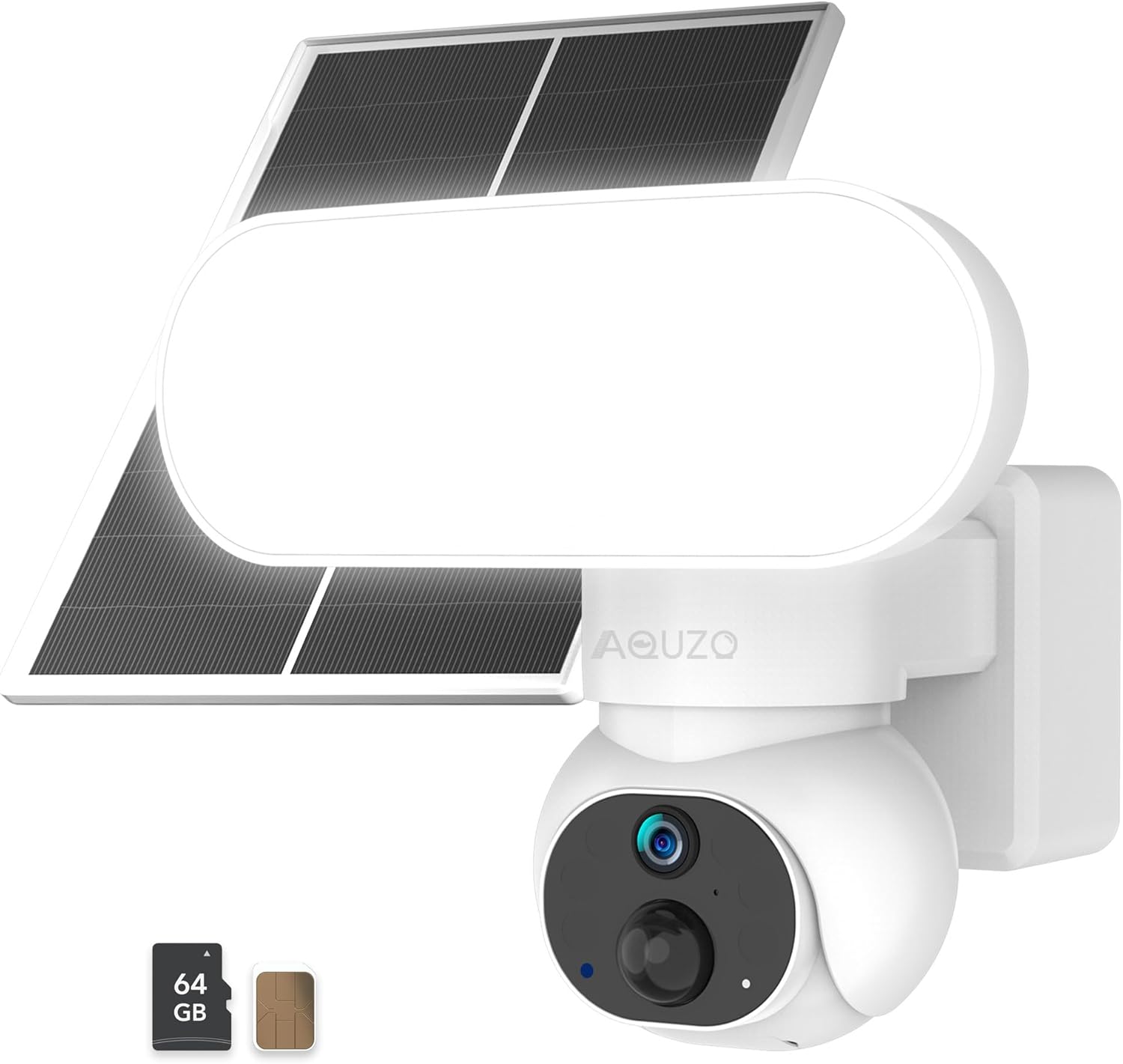 Solar Security Camera 4G LTE, No WiFi Needed Wireless Outdoor Camera, 2K 360° PTZ with Floodlight, Color Night Vision, Free 300MB Data & 64GB SD Card, Motion Activated, Waterproof