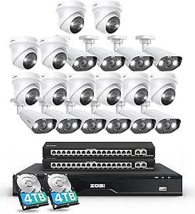 ZOSI 4K 32 Channel PoE Security Camera System,20pcs 4K Pan/Tilt Spotlight Cameras Outdoor,Auto Human Tracking,2 Way Audio,Face Person Vehicle Detection,32CH 8MP NVR with 8TB HDD for 24/7 Recording