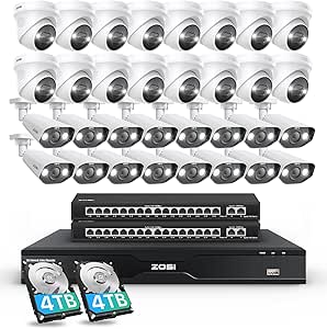 ZOSI 32CH 4K PoE Security Camera System,32pcs 8MP Pan/Tilt Outdoor IP Cameras,Auto Human Tracking,Person/Vehicle Detection,Color Night Vision,2-Way Audio,32CH NVR with 8TB HDD for 24/7 Recording
