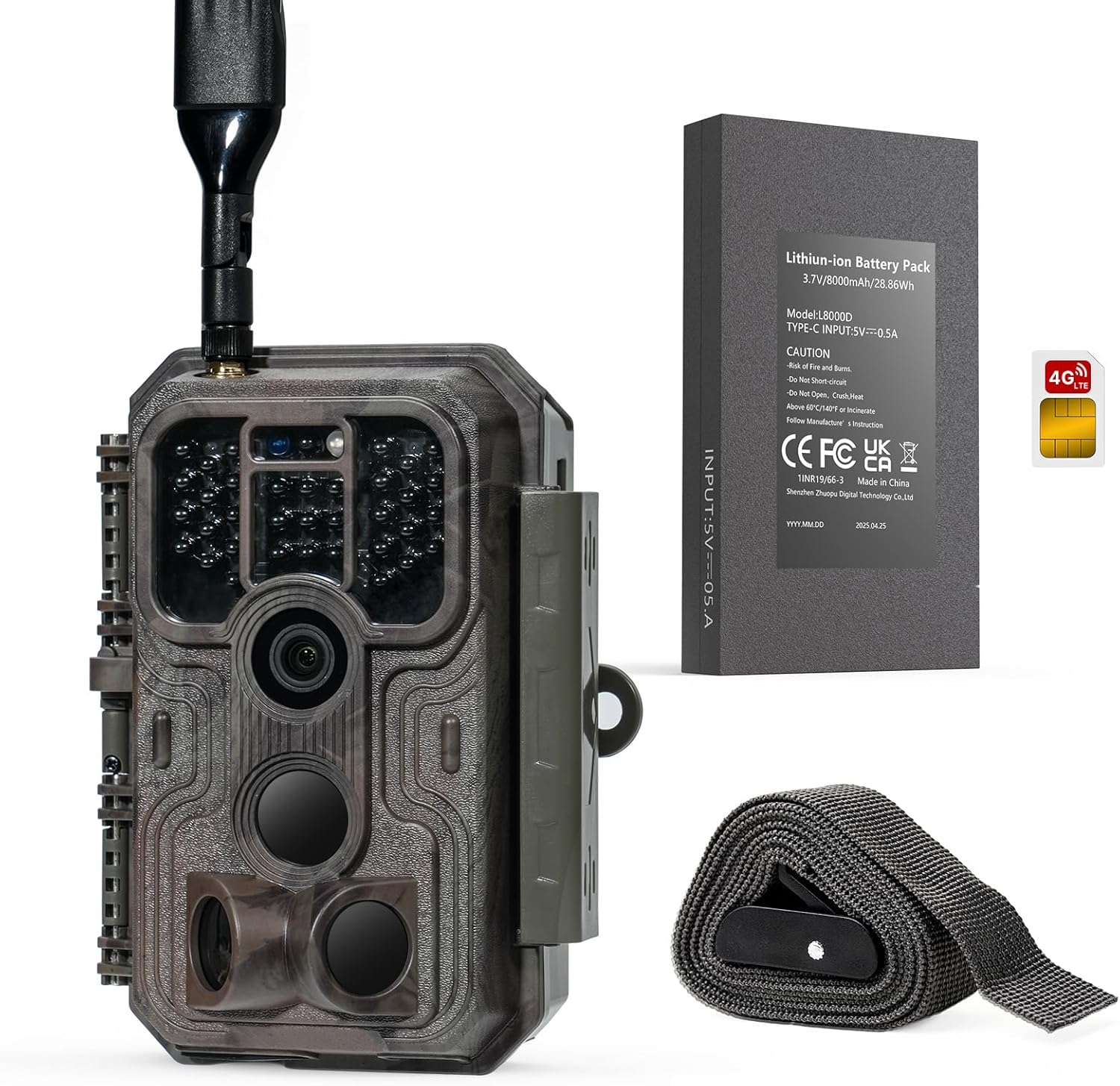 S950P Cellular Trail Camera, 2025 Upgrade with 8000mAh Battery & Shared Data Plans, 4G LTE for AT&T/Verizon/T-Mobile, App Control, 48MP Photo, 1296P Video, Night Vision, for Hunting/Wildlife |