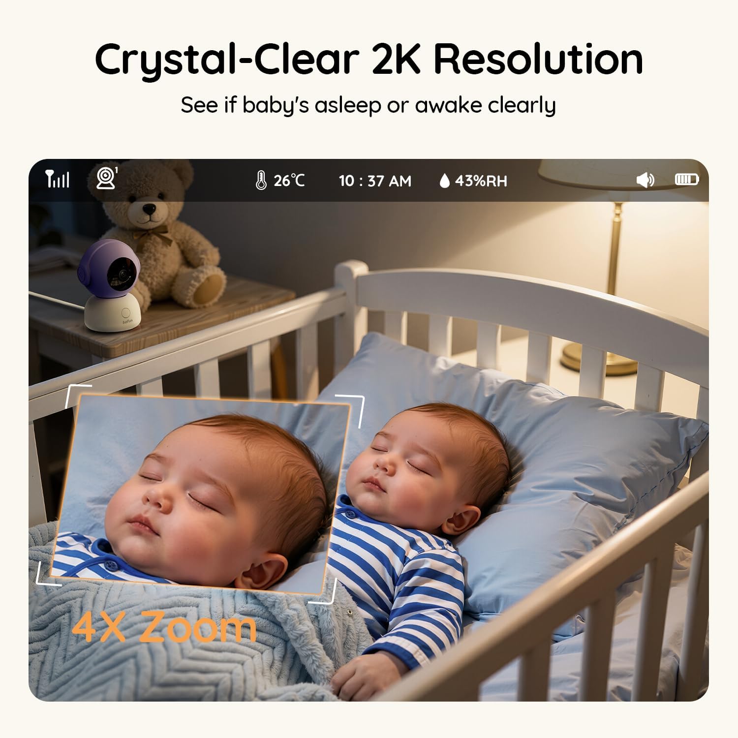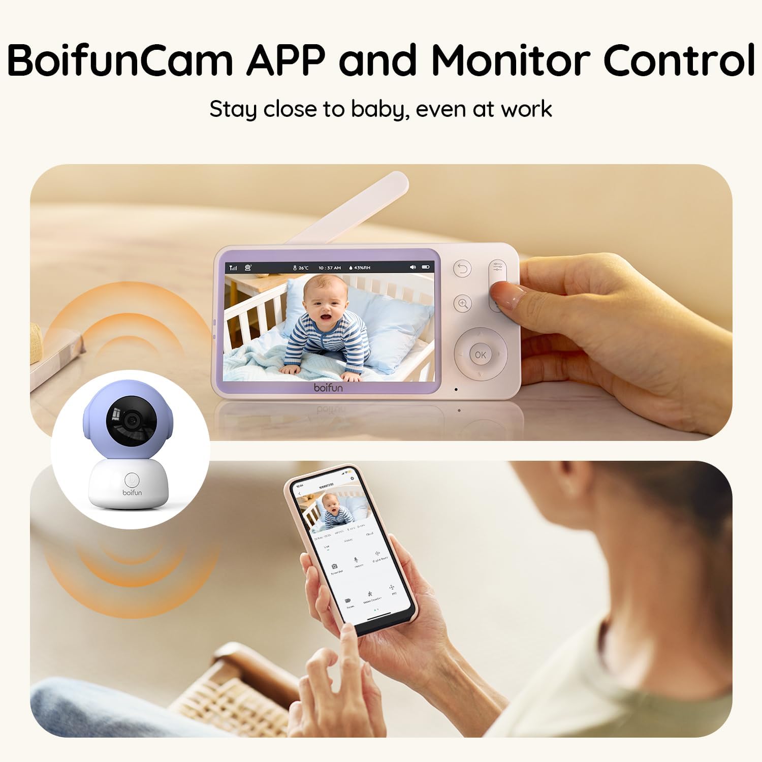 BOIFUN 2K HD Baby Monitor with Camera and Audio, Baby Monitor with Smartphone App, Wi-Fi Cameras,5-inch Display, Motion Tracking, Encrypted Connection, Night Vision, long-range 2-Way Talk, Temp Sensor