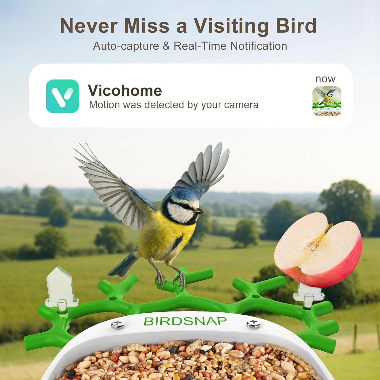 birdsnap® MON - Bird Feeder with Camera, 2K Detachable Video Bird Feeder Live with 39GB Card Fruit Fork, AI Identify Feather Species, Auto Record in Backyard, Ideal Gift for Birds Lover |