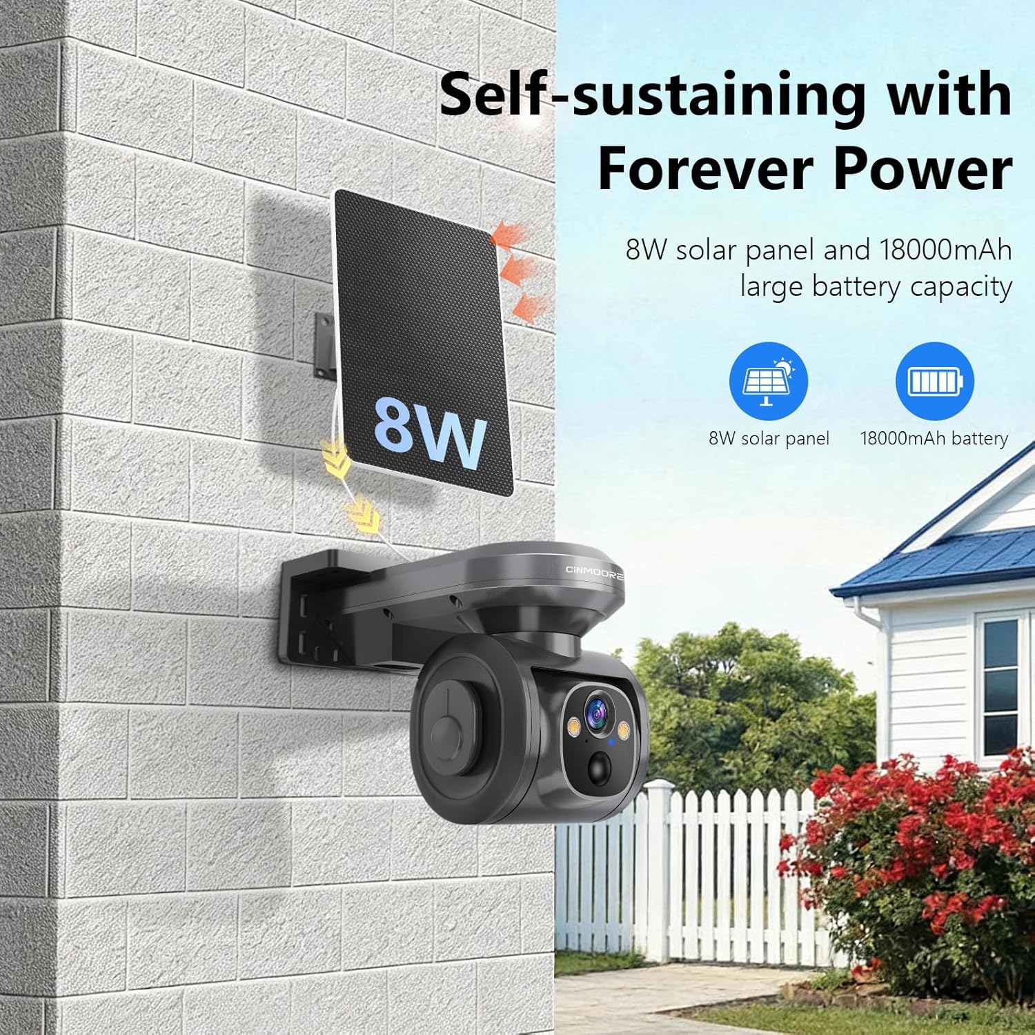 2.5K 4MP 4G LTE Cellular Security Camera Solar Power Wireless Outdoor, 24/7 Recording No Need WiFi, 360° Live View, Includes SIM & 64GB SD Card, Color Night Vision (Metallic Gray) |