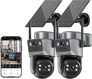 Kurain Solar Security Cameras Wireless Outdoor, 2.4G/5G WiFi 6, Dual Lens Security Camera with 6MP Color Night Vision/Motion Detection/Human Tracking/Spotlight Siren/2-Way Audio/360┬░PTZ/Alexa, 2Pcs |