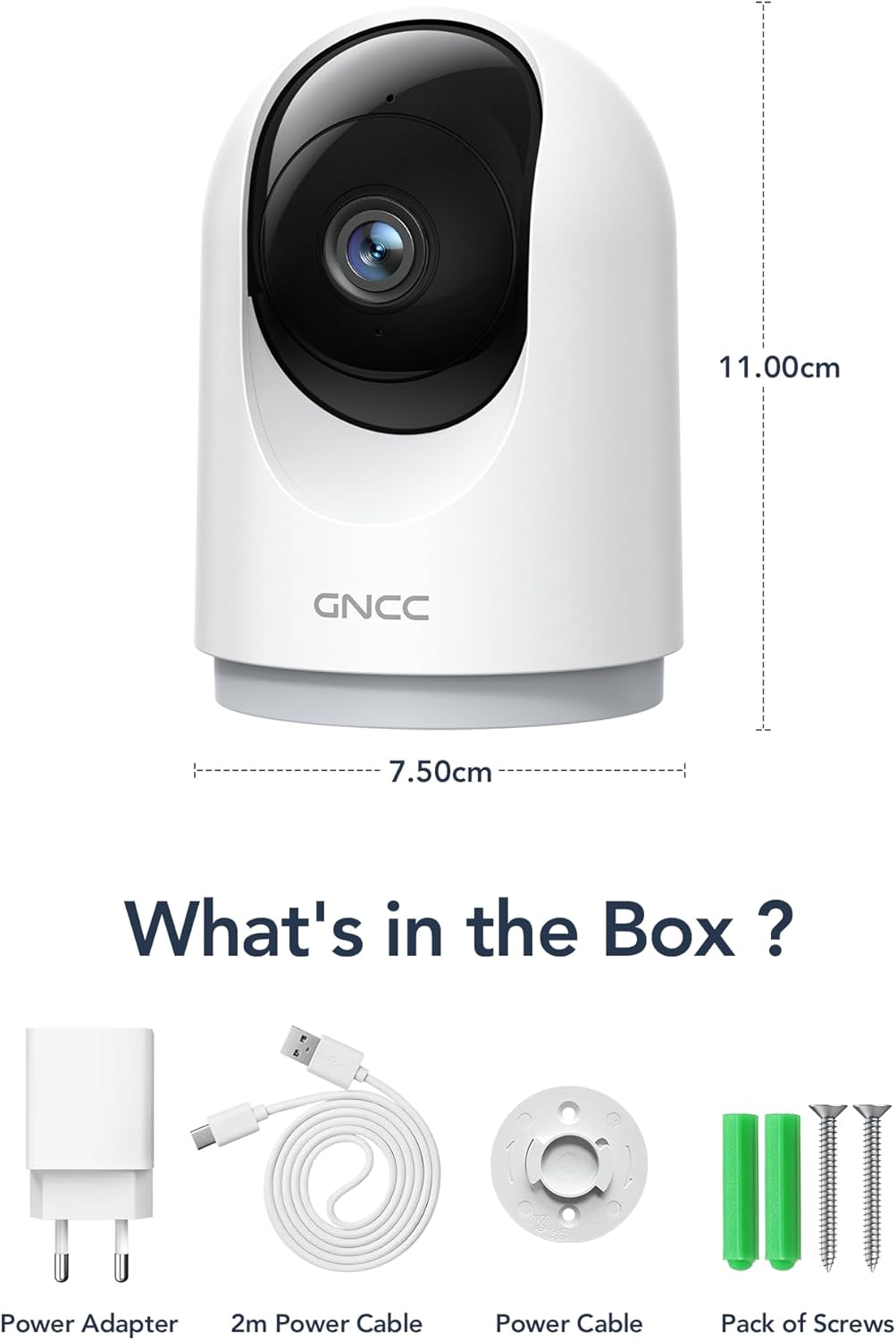 GNCC 2K Indoor Security Camera-Baby Monitor with Camera and Audio, Pet Camera with Phone App, Night Vision, Motion Detection, 2-Way Audio, TF/Cloud Storage, Works with Alexa & Google Home, 2.4G WiFi