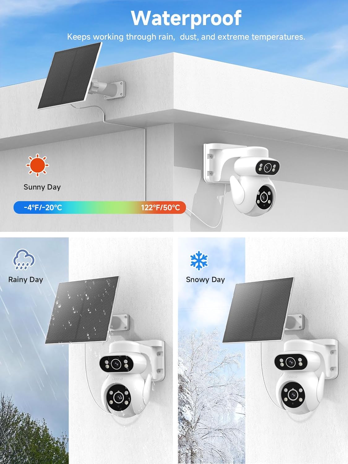 Large Battery & Solar Powered - Powered by a high-capacity 10000mAh battery and a 5W solar panel, this 4G outdoor camera wireless keeps watch endlessly—no outlets, no outages, ensuring continuous operation even through extended cloudy periods. Once installed, enjoy worry-free, wire-free security that lasts for years. Dual Lens 360° PTZ - One Device=2 Cameras, Noorio dual lens security camera eliminates blind spots for ultimate protection. The fixed lens monitors critical zones, while the rotating lens sweeps 355° horizontally & 90° vertically. Auto tracking & guard your porch, yard, and driveway with zero distortion, doubling your security while upgrading home defence to pro-level 24/7 AOV Recording - Noorio wireless home security cameras utilize AI-powered smart framing. When detecting motion from people or vehicles, the system seamlessly switches to 25fps to ensure detailed footage. During inactivity, it reduces the frame rate to extend battery life. Enables continuous 24-hour recording that captures every critical moment while maximizing power efficiency Incredible 2K Day & Color Night Clarity - Witness every detail in stunning 4MP resolution. Equipped with advanced night vision, this solar camera outdoor wireless delivers vivid color images even in total darkness. Whether it's a curious deer passing by or a suspicious movement at midnight, you'll see it all in crisp, lifelike detail 4G LTE Cellular Connectivity - Stay connected anywhere with seamless 4G LTE, no Wi-Fi or power outlets required. Our solar camera outdoor wireless is perfect for remote locations like country houses, construction sites, or off-grid properties with a built-in SIM card for instant activation. Manage your plan, or monitor data usage effortlessly through the Noorio Plus App Large Battery & Solar Powered - Powered by a high-capacity 10000mAh battery and a 5W solar panel, this 4G outdoor camera wireless keeps watch endlessly—no outlets, no outages, ensuring continuous operation even through extended cloudy periods. Once installed, enjoy worry-free, wire-free security that lasts for years. Dual Lens 360° PTZ - One Device=2 Cameras, Noorio dual lens security camera eliminates blind spots for ultimate protection. The fixed lens monitors critical zones, while the rotating lens sweeps 355° horizontally & 90° vertically. Auto tracking & guard your porch, yard, and driveway with zero distortion, doubling your security while upgrading home defence to pro-level 24/7 AOV Recording - Noorio wireless home security cameras utilize AI-powered smart framing. When detecting motion from people or vehicles, the system seamlessly switches to 25fps to ensure detailed footage. During inactivity, it reduces the frame rate to extend battery life. Enables continuous 24-hour recording that captures every critical moment while maximizing power efficiency Incredible 2K Day & Color Night Clarity - Witness every detail in stunning 4MP resolution. Equipped with advanced night vision, this solar camera outdoor wireless delivers vivid color images even in total darkness. Whether it's a curious deer passing by or a suspicious movement at midnight, you'll see it all in crisp, lifelike detail 2-Way Audio & Integrated Smart Alarm - Stay in control with 2-way voice communication with the solar outdoor wifi camera, talk directly to visitors, delivery personnel, or deter trespassers with a clear, loud siren & white light alarm, ideal for remote monitoring in real time |