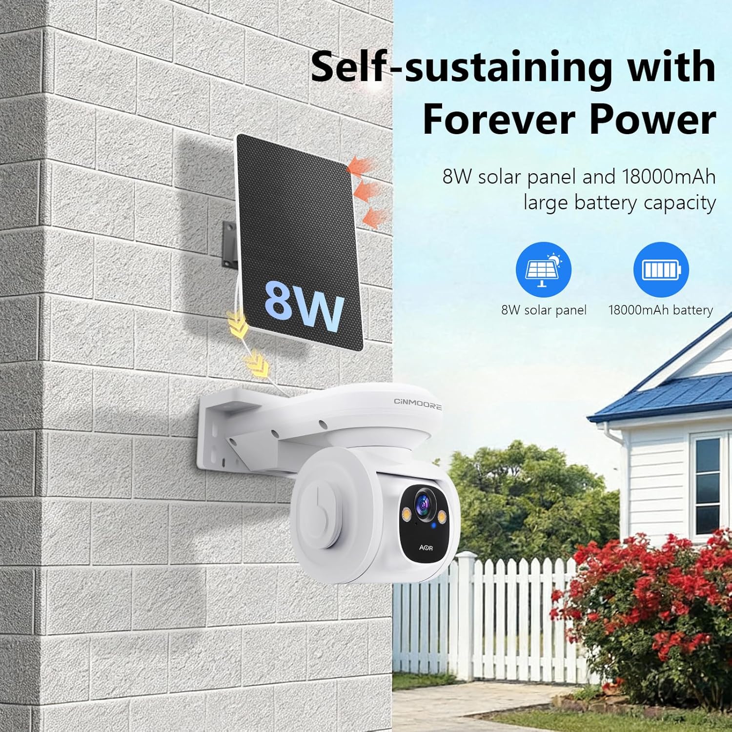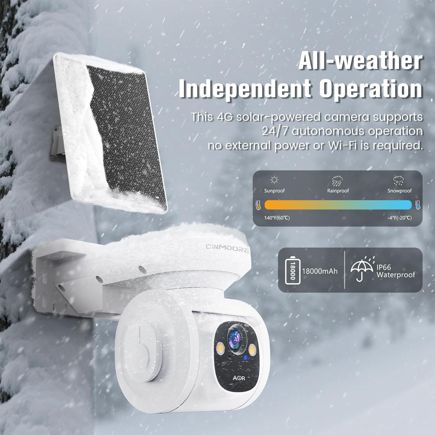 2.5K 4MP 4G LTE Cellular Security Camera Solar Power Wireless Outdoor, 24/7 Recording No Need WiFi, 360° Live View, Includes SIM & 64GB SD Card, Color Night Vision (White) |