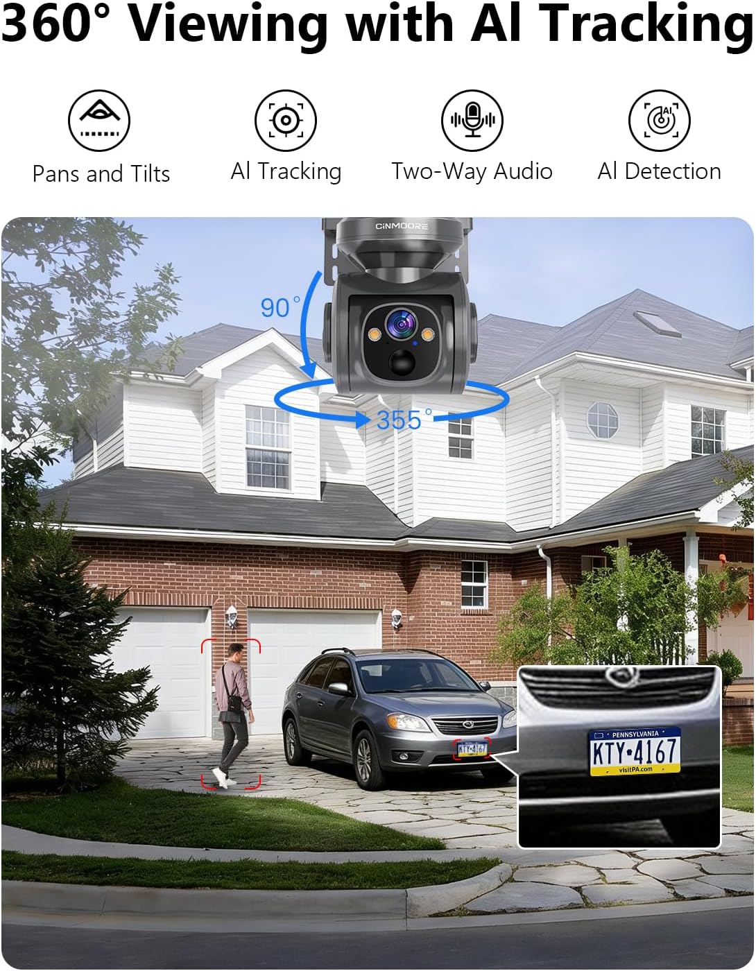 2.5K 4MP Solar Security Camera Wireless Outdoor, Battery Powered Outside Camera 18000mAh, 4G LTE Cellular, Pan and Tilt AI Tracking, No WiFi Needed, 360° Live View, Includes SIM & 64GB SD Card