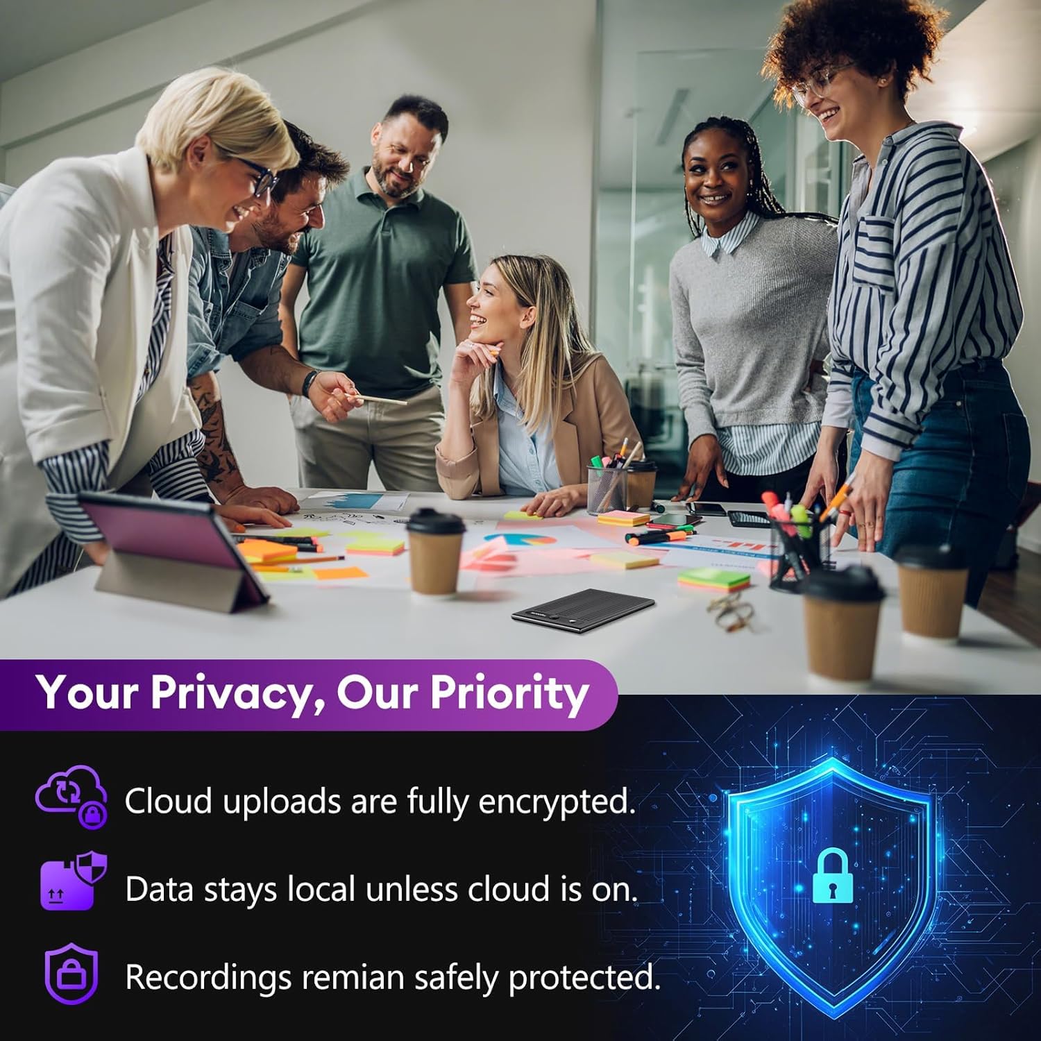 Ultra-Intelligent AI Technology: Voice recorder boasts a real-time speech-to-text accuracy rate exceeding 99%, supports 152 languages, and Recorder with ai also features summarization, mind mapping, translation, and transcription functions Unlimited Free Service: AI voice recorder has unlimited free AI transcription, 30+ built-in pro summary templates, and speech-to-text that turns conversations into exportable docs for business, education Massive Memory & Privacy Protection:AI Recorder doesn't require an SD card. The recordings are first encrypted by the ai note recorder's hardware, and then encrypted again before being uploaded, thus protecting your privacy in all aspects MINI INCH, MAXI MIGHT: Mini voice recorder is only 0.15 inches thick and weighs only 0.1 pounds. In addition, recorder for meetings comes with a magnetic protective case for easier use Package includes: 1 AI voice recorder, 1 NOTE-1 exclusive magnetic protective case, 1 magnetic ring, 1 charging cable and 1 user manual Ultra-Intelligent AI Technology: Voice recorder is based on GPT-4o and provides real-time speech-to-text conversion with an accuracy rate of over 99%. It supports 101 languages and provides context summarization, mind mapping, translation, transcription and other functions Unlimited Free Service: Download the companion software to enjoy free AI features—unlimited transcriptions. AI voice recorder also provides over 30 professional summary templates, transforming every conversation into a professional, exportable document suitable for business, education, and other fields Massive Memory & Privacy Protection: AI Recorder features 64GB of built-in storage, eliminating the need for an SD card and accessible through the Voxwave app. Recordings are stored with hardware encryption and then encrypted again when uploaded to the cloud. The independently isolated storage space prevents unauthorized access from recording to storage, ensuring your privacy MINI INCH, MAXI MIGHT: Mini voice recorder features a lightweight 0.15-inch housing and weighs only 0.1 pounds, making it easy to fit in any pocket. It also comes with a magnetic protective case that allows you to attach the recorder to your phone or other device for easy portability Package includes: 1 AI voice recorder, 1 NOTE-1 exclusive magnetic protective case, 1 magnetic ring, 1 charging cable and 1 user manual |