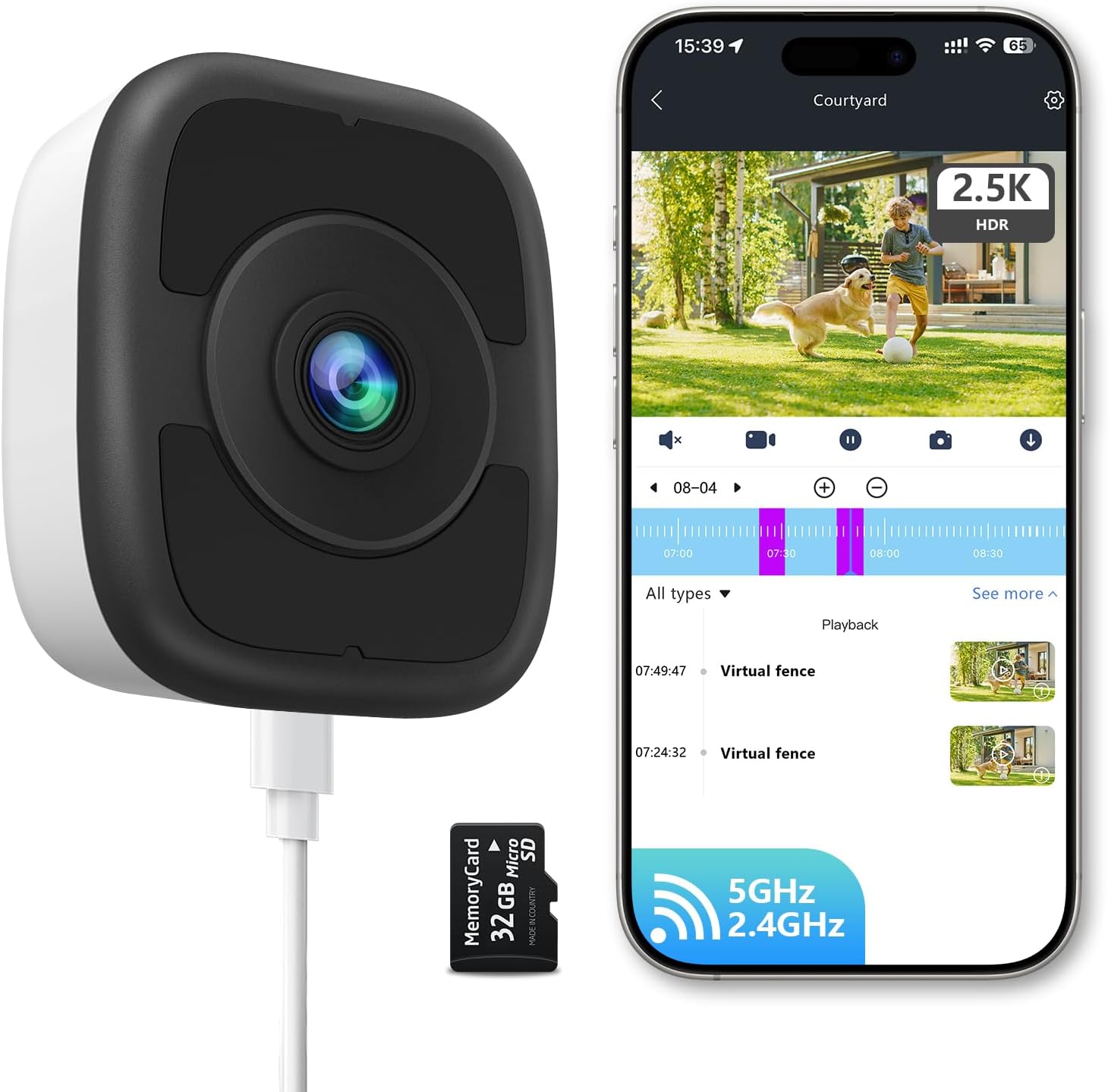 Magnetic Mounting Design & Easy Installation: Featuring an innovative magnetic fixation system, it can be quickly installed in under 15 seconds without damaging the window frame. It supports both Bluetooth and Wi-Fi connectivity, allowing for easy pairing with your mobile phone. 2.5K Ultra HD Picture Quality & Color Night Vision:Equipped with a 4-megapixel lens and 2.5K (2560×1440) ultra-high-definition resolution,it delivers stunning video performance;Even in low-light environments,it can excellently display full-color images,ensuring no critical details are missed and safeguarding nighttime security. NO Subscription Fees & Timely alert notifications: All features are available without any subscription fees. It supports customizable motion detection zones; once someone is detected approaching, the device will promptly react by sending push notifications to your phone, sounding an alarm, and automatically recording video—effectively deterring intruders. Local Storage: This device supports 24/7 recording to capture your beautiful moments; You can choose local storage via an SD card (up to 512GB), and the product already includes a 32GB memory card to ensure you can start using it immediately. We will protect the security and privacy of your data. Remote Access & Device Sharing:No matter where you are,easily access the live monitoring feed anytime via your smartphone;The device supports sharing with up to 16 users,allowing seamless collaboration with family and friends for enhanced peace of mind. Drill-Free Adhesive Design & Easy Installation: With an innovative 3M adhesive fixing mode,it can be quickly installed in 15 seconds without damaging the window frame; It supports both Bluetooth and Wi-Fi connectivity,allowing easy pairing with your mobile phone 2.5K Ultra HD Picture Quality & Color Night Vision: Equipped with a 4-megapixel lens and 2.5K (2560×1440) ultra-high-definition resolution,it delivers stunning video performance; Even in low-light environments,it can excellently display full-color images,ensuring no critical details are missed and safeguarding nighttime security No Subscription Required&Timely alert notifications: All features are available without any subscription fees. It supports customizable motion detection zones; Once someone is detected approaching, the device will promptly react by sending push notifications to your phone, sounding an alarm, and automatically recording video—effectively deterring intruders Local Storage: This device supports 24/7 recording to capture your beautiful moments; You can choose local storage via an SD card (up to 512GB), and the product already includes a 32GB memory card to ensure you can start using it immediately; We will protect the security and privacy of your data Remote Access & Device Sharing: No matter where you are,easily access the live monitoring feed anytime via your smartphone; The device supports sharing with up to 16 users,allowing seamless collaboration with family and friends for enhanced peace of mind |