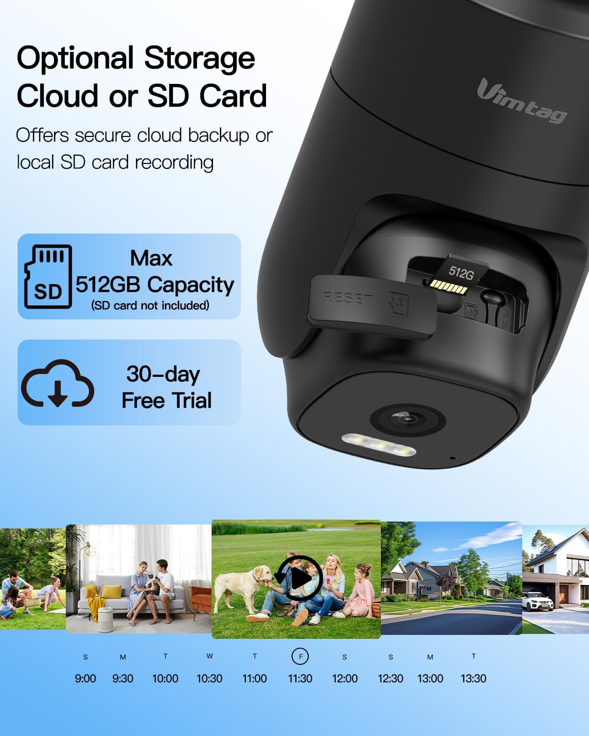 VIMTAG Outdoor Cameras for Home Security, 2.5K Security Camera Outdoor, 360° Pan/Tilt Outside House Surveillance, Motion Tracking, Color Night Vision, 2-Way Audio, 5G/2.4G WiFi, Cloud/SD Card Storage