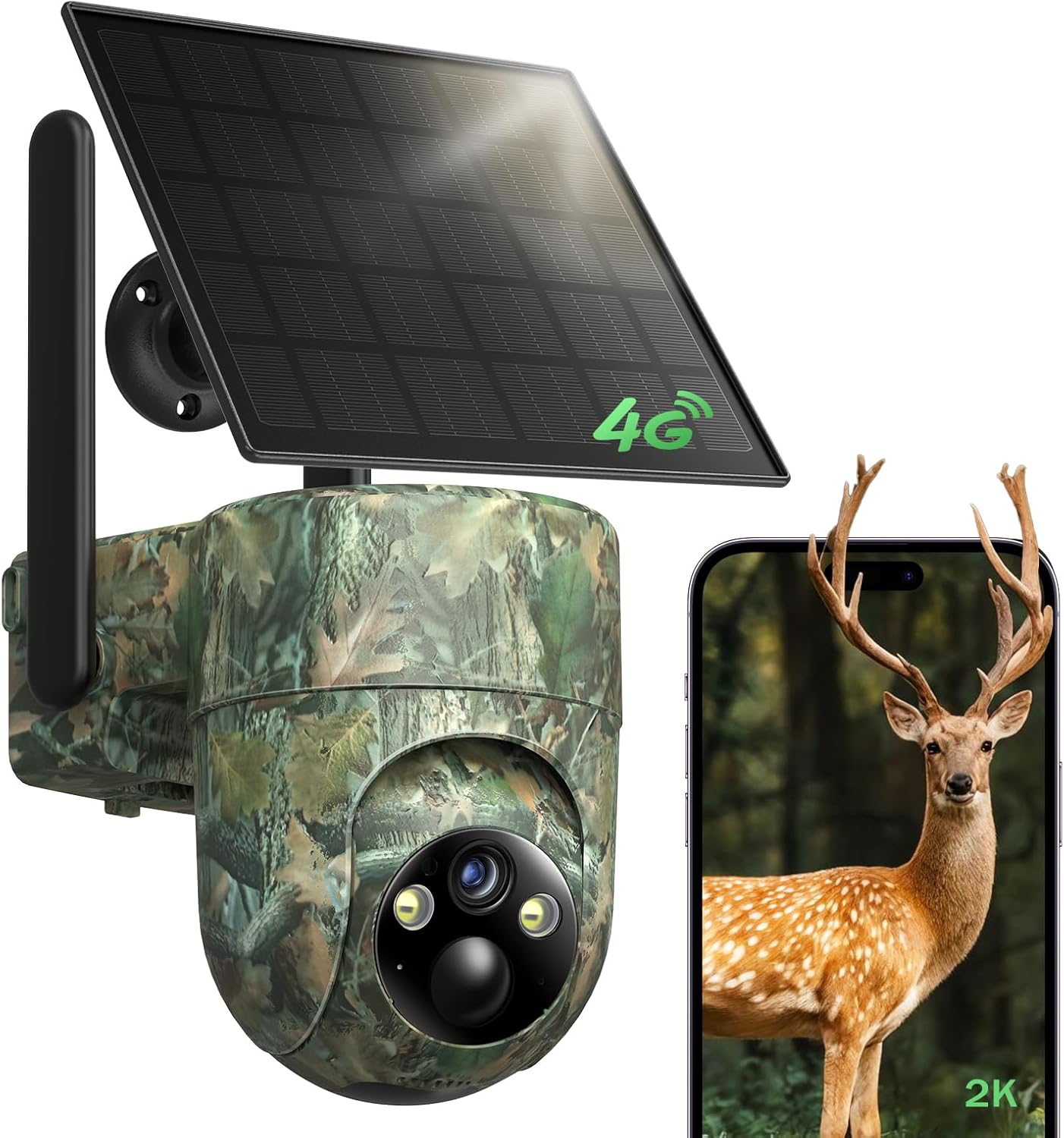 LIWAN Cellular Trail Camera, 4G LTE Game Cameras, 2K HD Trail Cam, 360° Live View Solar Trail Camera Outdoor with PIR Motion Detection Waterproof IP66 for Wildlife Built-in SIM Card