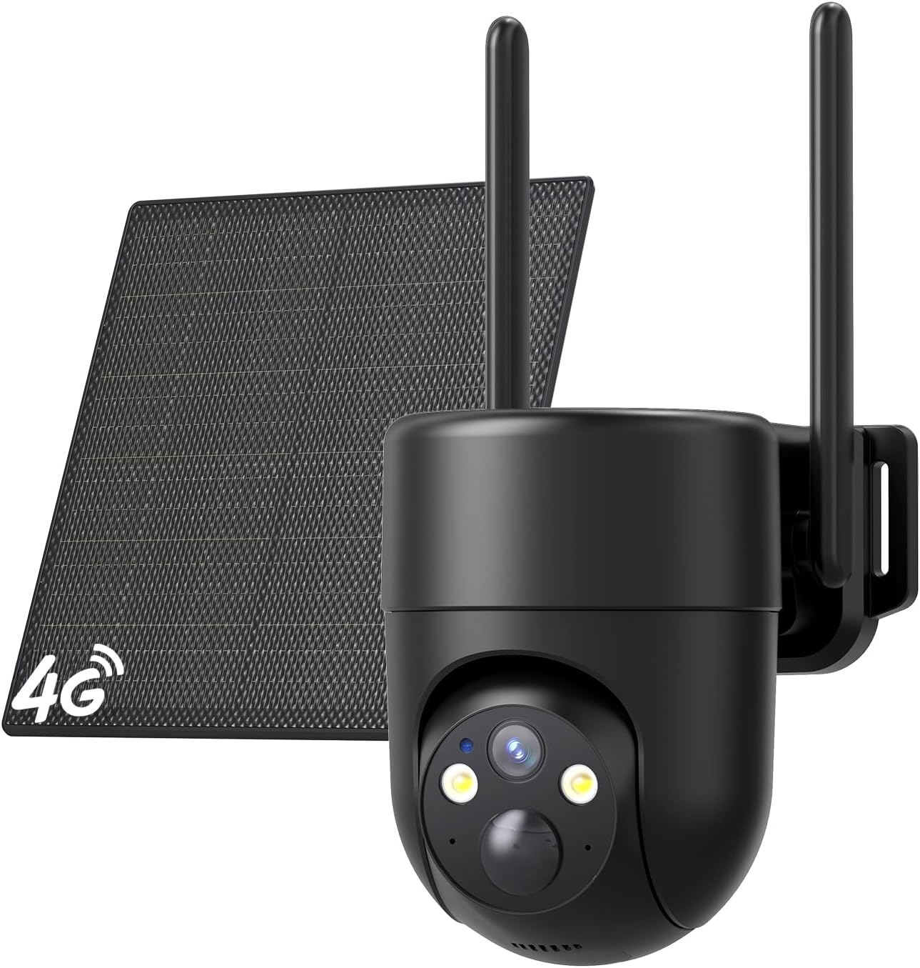 4G LTE Cellular Security Camera, 360° View Security Camera Outdoor, 2K Color Night Vision |
