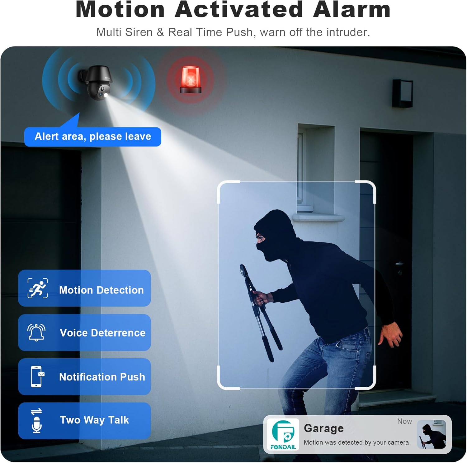 【No WiFi. No Power. Still protected.】First 4G wireless camera with 24/7 Always on video recording (requires SD card). Keep your property under constant watch, never miss a single moment, day or night. This 4G LTE cellular solar security camera works ANYWHERE with 4G coverage. No cables. No router. No electrician. Perfect for properties, farms, barns, ranches, construction sites, RVs, warehouses & vacation homes. 【Unlimited 4G Data — Plug in & Go】Built-in SIM card (pre-installed) auto-connects to the strongest network: Verizon, AT&T, or T-Mobile. Protect what’s yours for just $0.55 a day with the annual plan. Choose the plan that fits you: $19.99/month | $53.99/quarter | $199.99/year. Try it FREE for 7 days — zero risk. Supports SD card up to 256GB (Not included) + Cloud Storage for total control. 4G only — WiFi is NOT supported. 【Solar Powered. 100% Wire-Free. Zero Hassle.】A massive 9000mAh rechargeable battery + Ultra high-efficiency solar panel keeps your camera running day and night. Charge once with the cable — then let the sun do the rest. No wires. No maintenance. No ongoing power costs. 【2K Ultra HD + Full 360° View】See EVERYTHING. Crystal-clear 2K resolution, 4X digital zoom, and 360° pan & tilt give you total area coverage with zero blind spots. At night, full-color night vision keeps your property visible and protected. Detects motion up to 100ft! Every movement, human or animal, is instantly spotted — nothing escapes its eyes. 【Instant Alerts + Talk Back in Real Time】Advanced PIR motion detection accurately spots people & animals, cutting down false alerts. Get instant push notifications on your phone the moment motion is detected. Use two-way audio to warn intruders, talk to workers, or check in — from anywhere, anytime. SOLAR POWERED EFFICIENCY: Built-in 9000mAh battery with solar panel provides continuous 365-day operation, eliminating the need for frequent charging or battery replacements ADVANCED SURVEILLANCE: Features 2K resolution, color night vision up to 33 feet, and 360-degree live view monitoring for comprehensive property protection SMART SECURITY: Equipped with PIR motion detection, multi-siren alarm system, and instant mobile notifications to keep you informed of any activity TWO-WAY COMMUNICATION: Integrated microphone and speaker enable clear audio interaction through your smartphone for visitor communication or intruder deterrence WEATHERPROOF DESIGN: Durable metal construction with IP65 rating makes it suitable for outdoor installation, perfect for driveways, garages, and porches |
