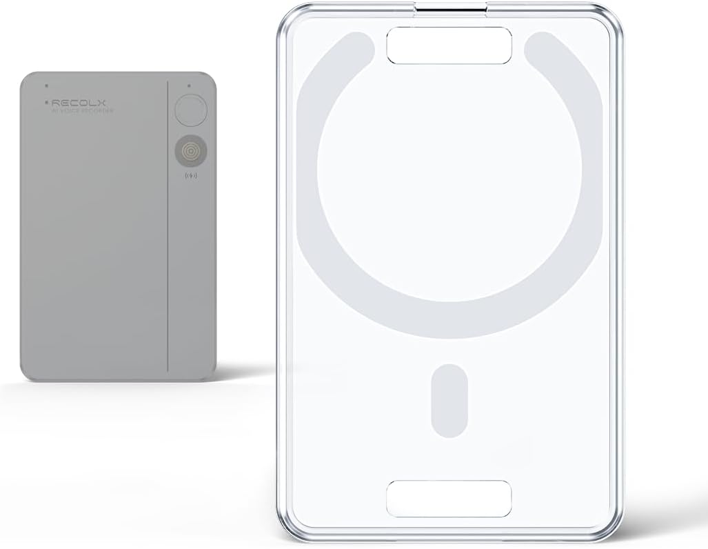 Designed for the RECOLX AI Voice Recorder Universal Stick-On Magnetic Ring for Any Phone Hands-Free Mobile Recording Setup Slim, Lightweight & Microphone-Friendly Quick Installation & Stable Magnetic Hold Magnetic Protective Case for RECOLX Recorder Custom-fit protective case designed for the RECOLX AI Voice Recorder. Built-in magnetic backing allows the recorder to attach securely to magnetic surfaces. Universal Stick-On Magnetic Ring for Any Phone Included magnetic ring adheres to the back of any smartphone or phone case, enabling strong magnetic attachment with the recorder’s protective case. Hands-Free Mobile Recording Setup Mount the recorder directly to your phone for convenient, one-handed or hands-free use—ideal for meetings, lectures, interviews, field work, and mobile content creation. Slim, Lightweight & Microphone-Friendly The protective case adds minimal bulk while keeping all buttons, charging ports, and microphones unobstructed for clear, high-quality recordings. Quick Installation & Stable Magnetic Hold Magnetic ring installs in seconds using high-strength adhesive. Delivers a stable, shake-resistant connection to keep your recorder securely attached on the go. |