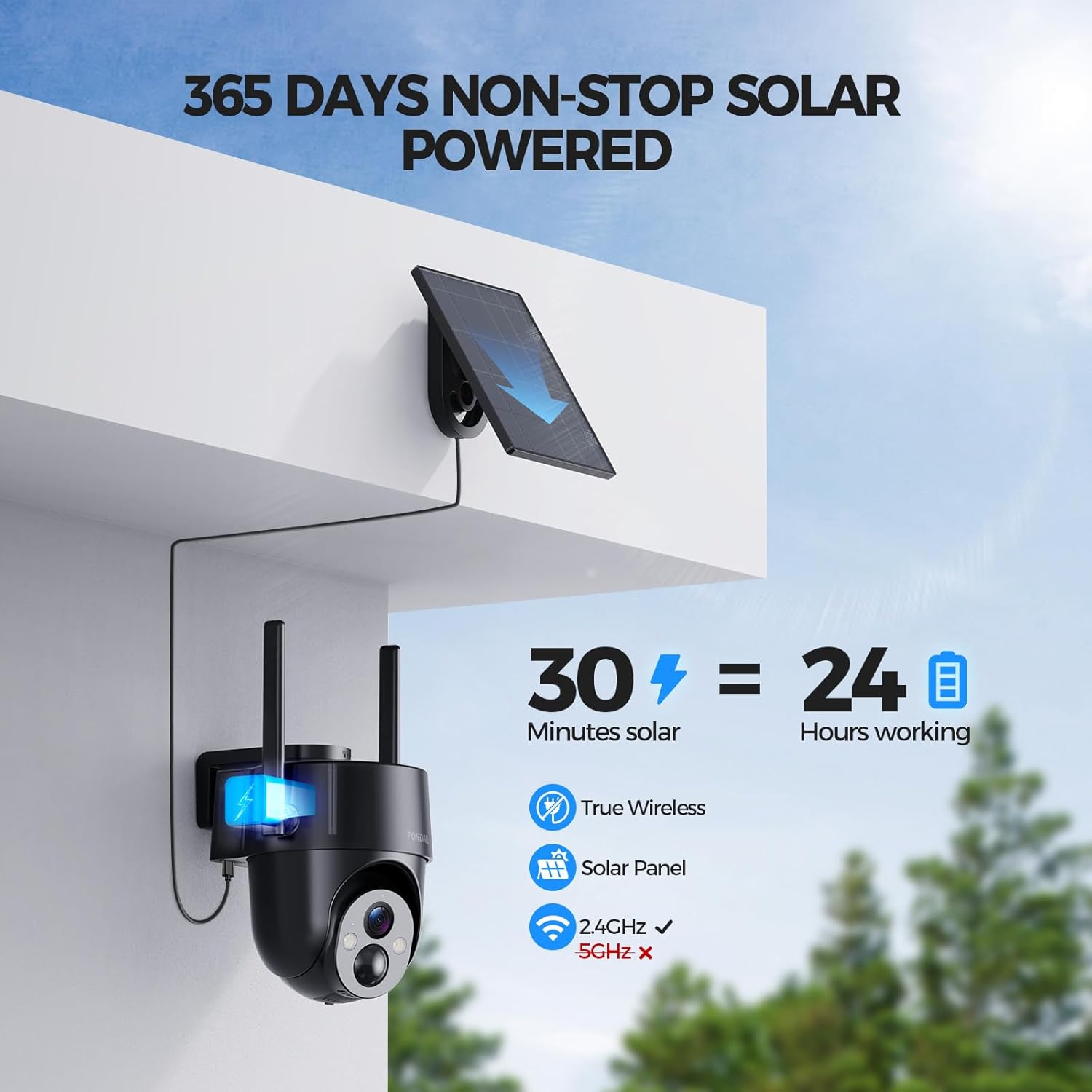 Solar Security Cameras Wireless Outdoor, 2K 360° View Solar Powered WiFi 3MP Security Camera for Home Security with Color Night Vision, PIR Detection, 2-Way Audio, Motion Alert, Easier to use