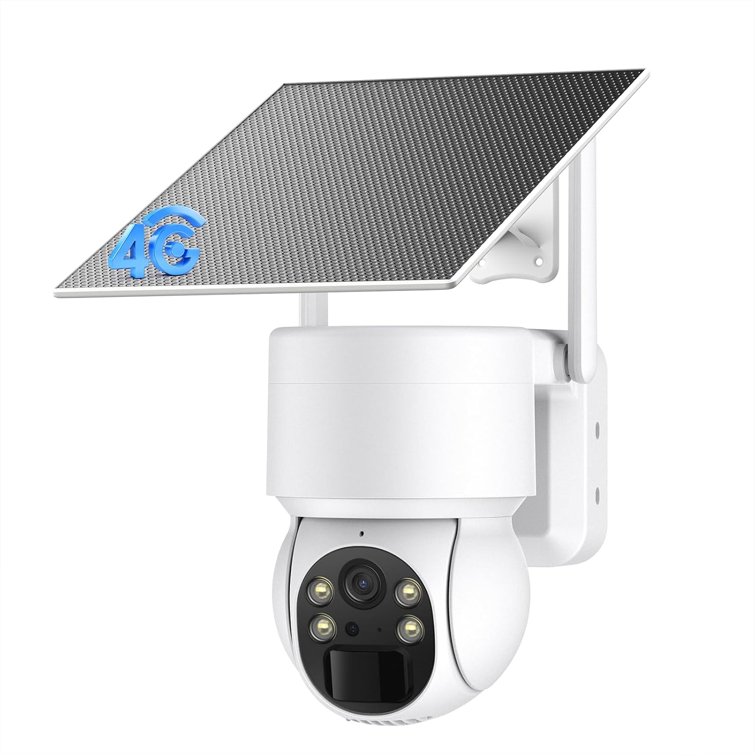 4G LTE Cellular Security Camera Outdoor, Wireless Solar Powered, 360° Live View, 2K Color Night Vision, Built-in SIM Card, Local/Cloud Storage, 2-Way Talk, No Wi-Fi Needed, White |
